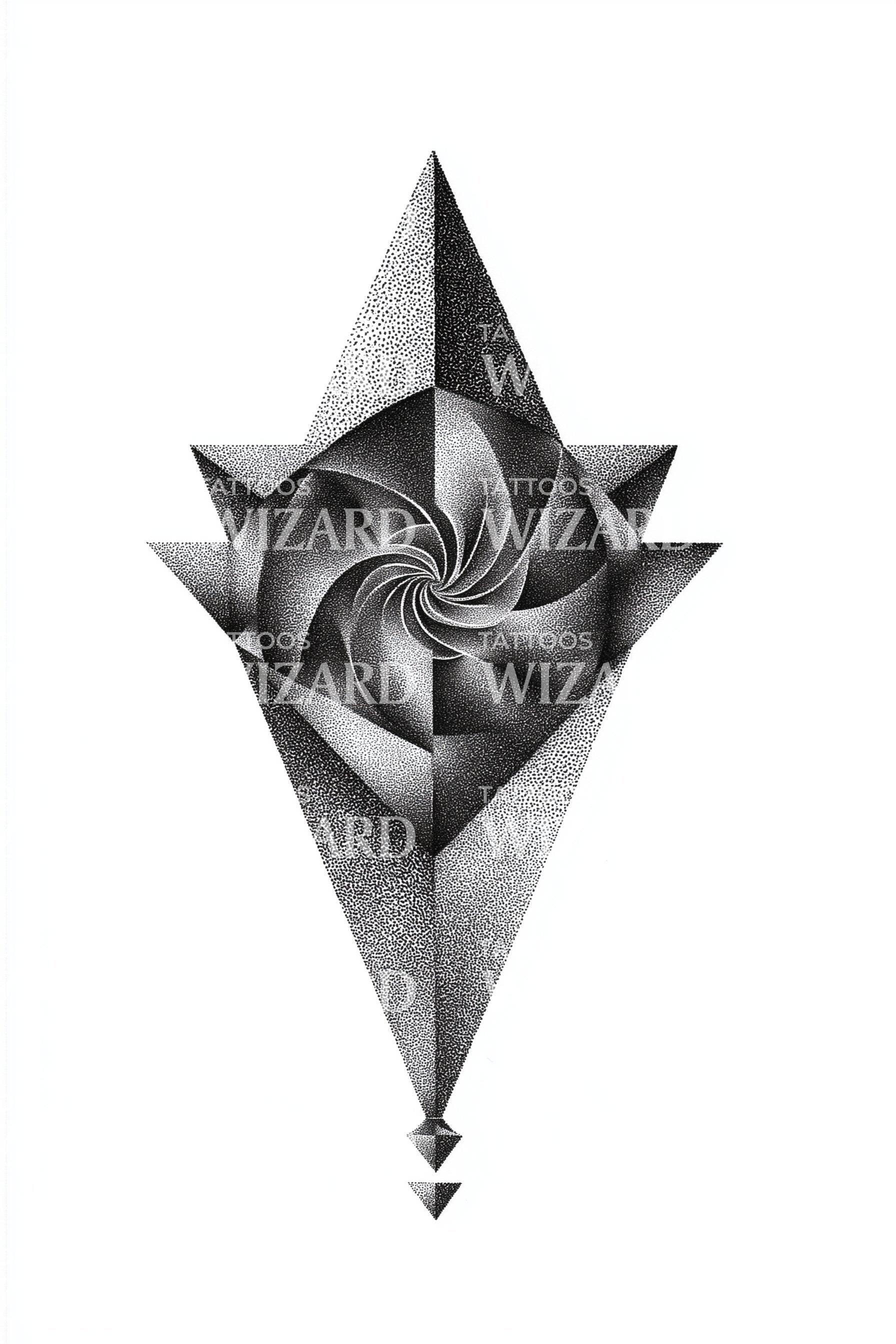 Fördjupa dig i den surrealistiska skönheten i denna dotwork-tatuering, med en fängslande blandning av diamanter och blommor. De geometriska undertonerna och den skarpa kontrasten framhäver den abstrakta konsten och skapar en fängslande symfoni av prickar som ger liv åt denna strålande design. Perfekt för dig som älskar unik, minimalistisk tatuering.