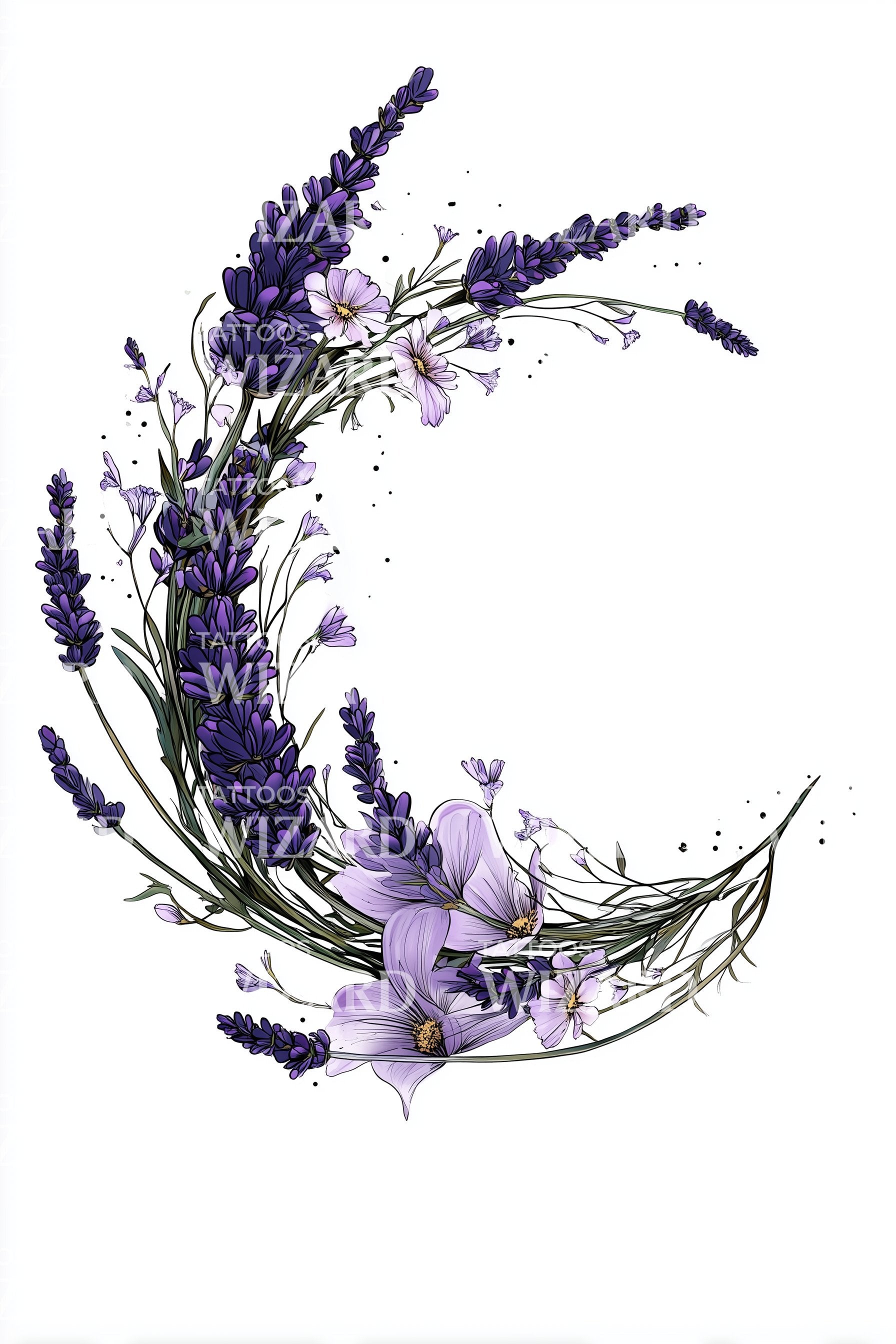 Lavendel Crescent Blommig Tatuering Design