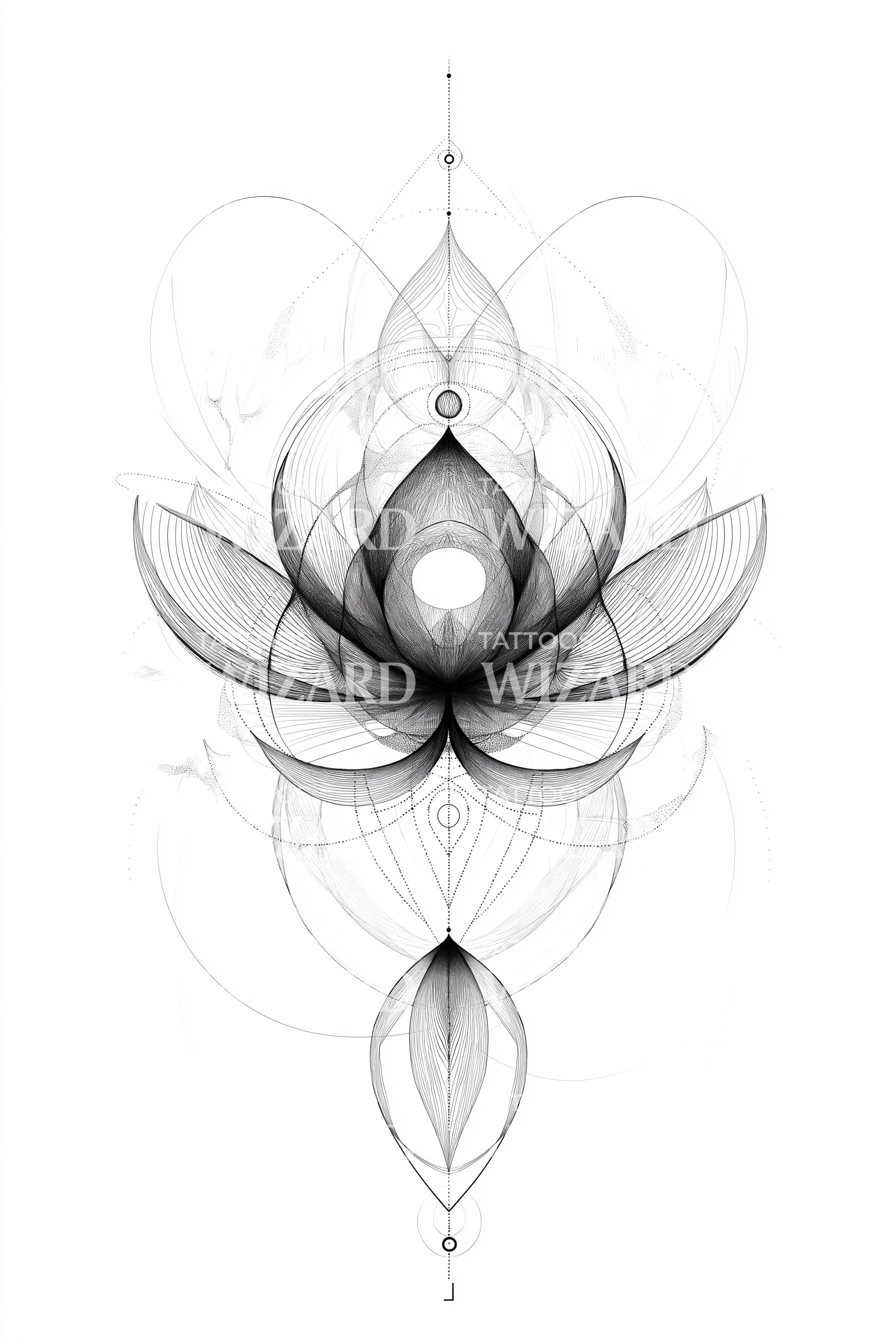 Mandala lotus unfurls in whisper-thin geometry, concentric circles and delicate dotwork rising on a serene vertical axis. Sacred petals cradle a luminous center, symbolizing awakening, purity, and return to balance. Wearing it invites steady breath, quiet confidence, and zen clarity, a compass to your truest self.