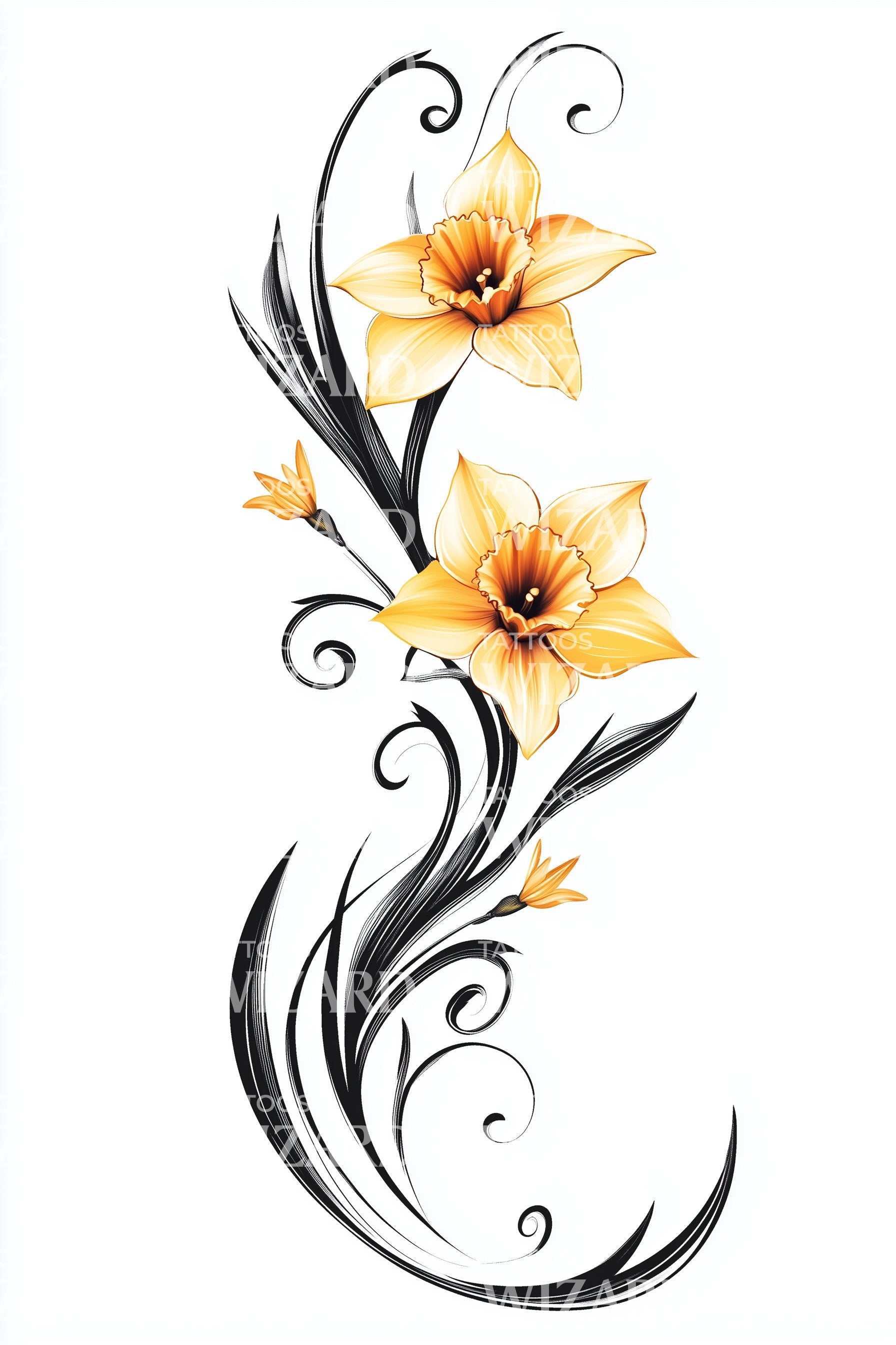 Altın Zambak Sarmaşığı Dövme İllüstrasyonu