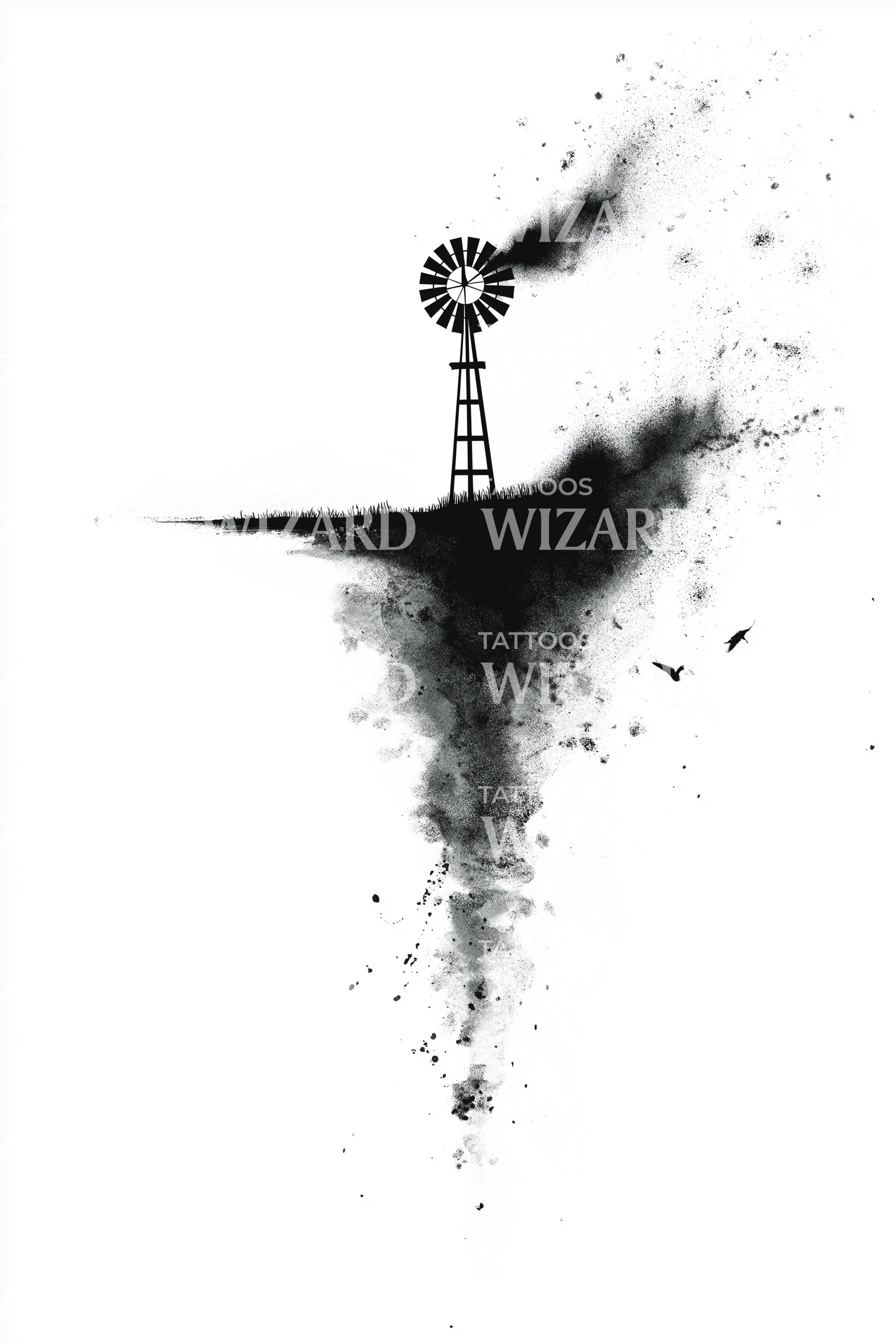 For the ones who turn disaster into direction. A turbine stands where the ground gives up, pulling wind through grief until smoke becomes purpose, ink becomes weather. Moody silence, a hard silhouette against the void. “Let the storm sign my name, not erase it.”
