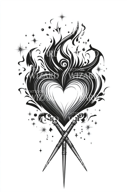 Sacred Flame Heart Tattoo Design