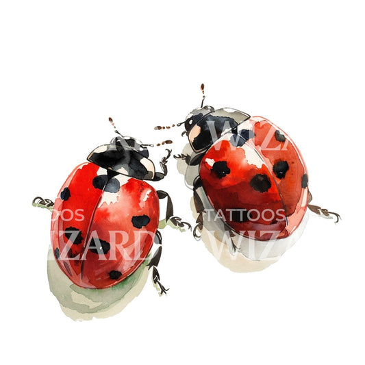 可爱的瓢虫水彩情侣纹身创意