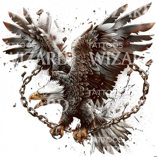 强大的鹰在链子上的纹身创意