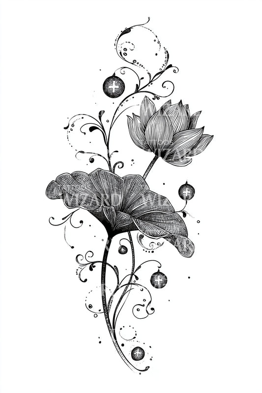 Ornate Grapevine Scroll Tattoo Illustration