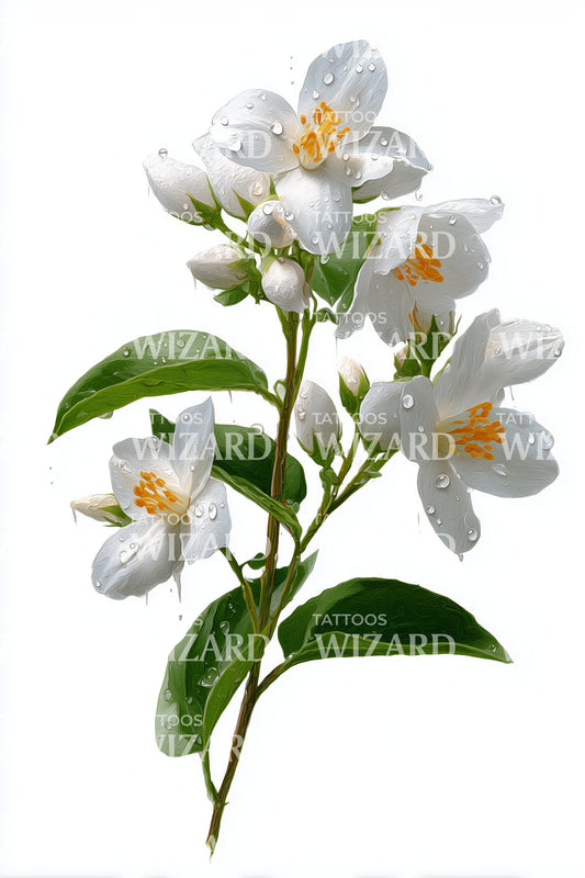 促销热带花朵枝条纹身设计灵感