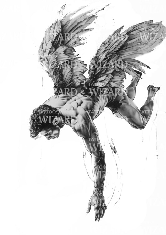伊卡洛斯从天空坠落的纹身设计