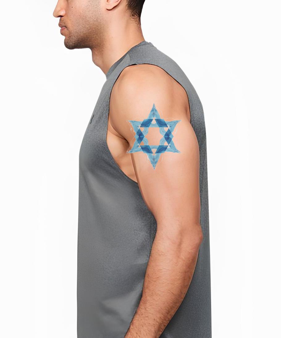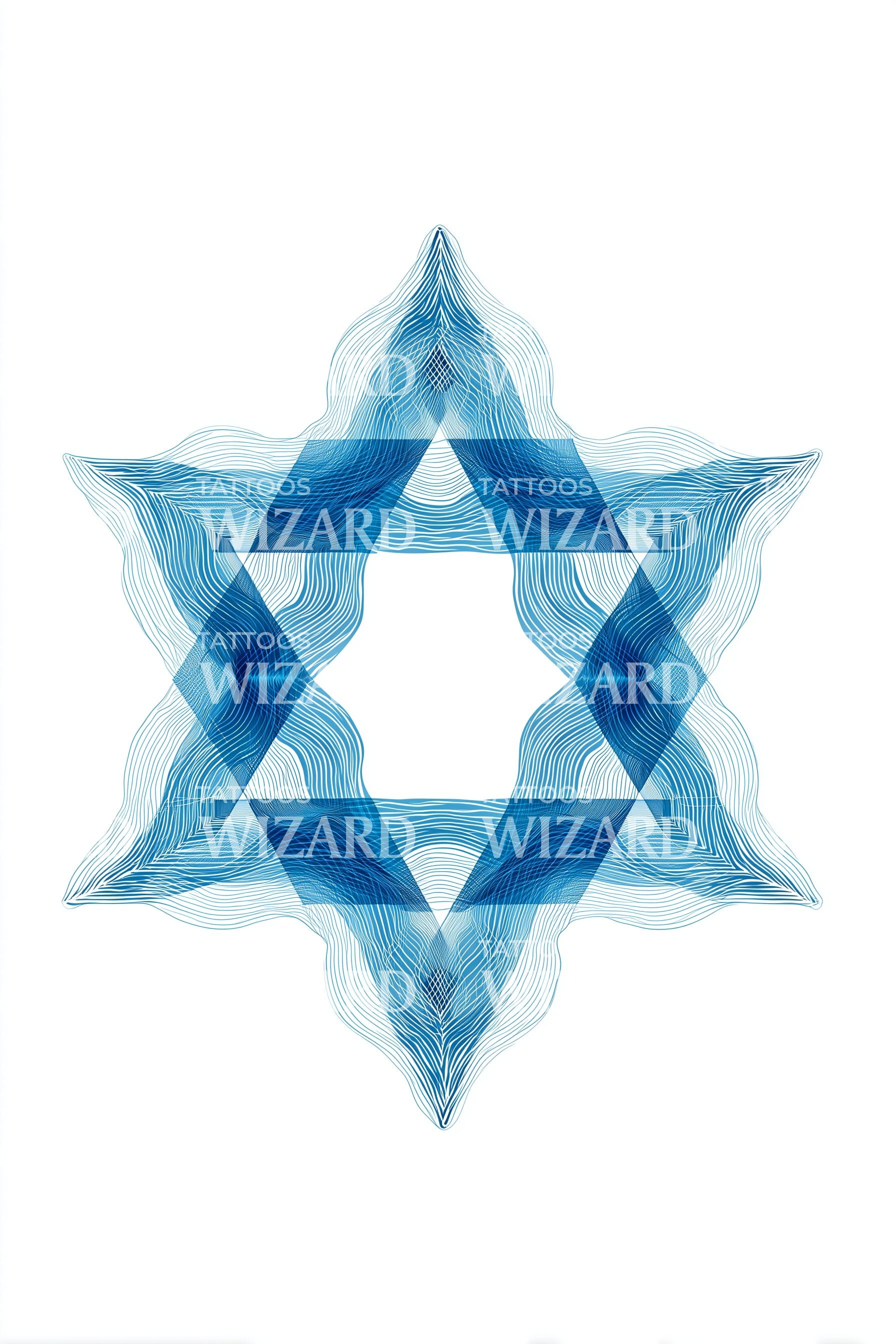 在您的肌肤上体验宇宙,这款现代抽象纹身设计展现了几何星星被烟雾般的蓝色光晕包围,宛如恒星星云。水彩技法增强了其空灵与天体的氛围,使其真正成为一件可穿戴的艺术品。