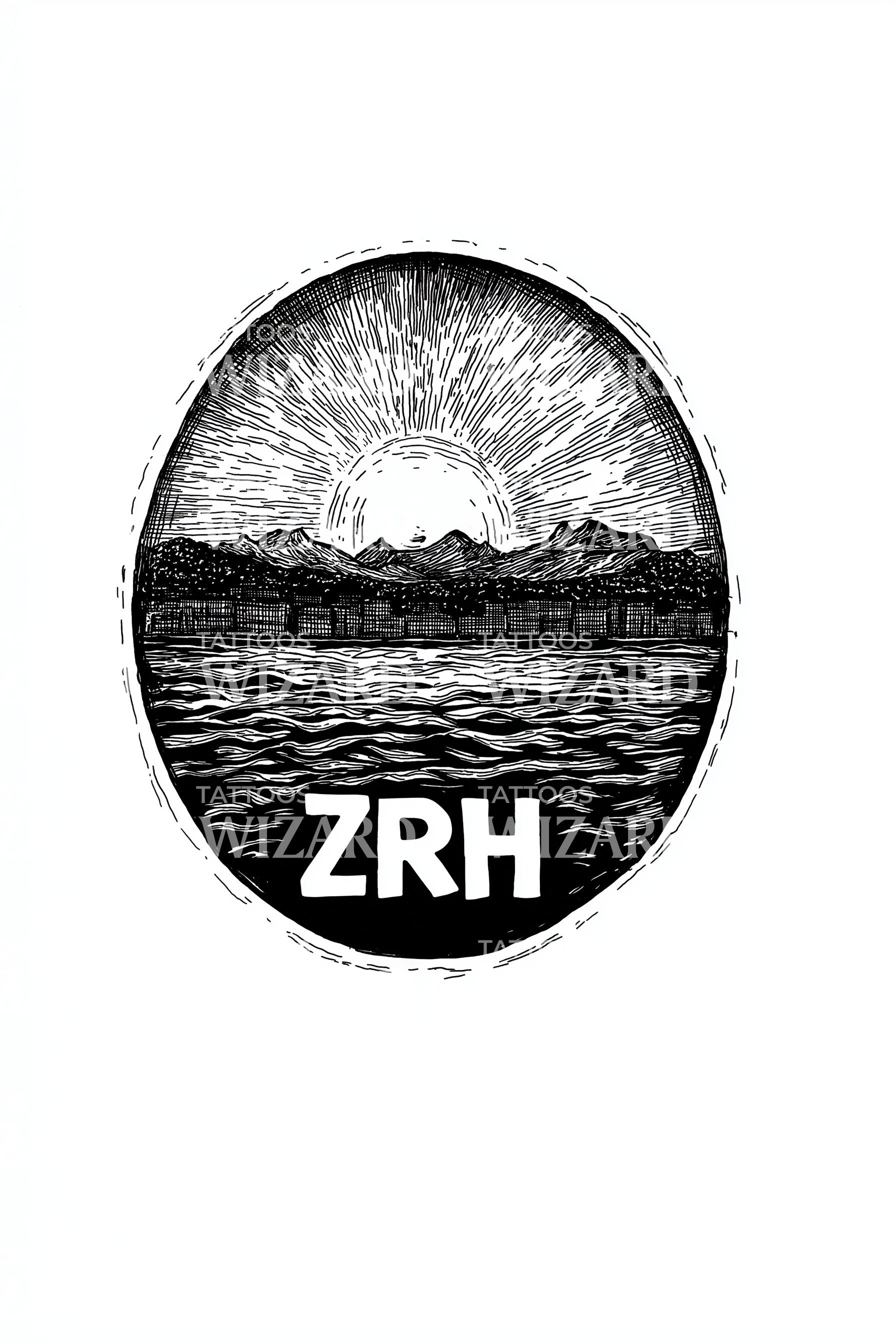 Carved in bold linework, an oval vignette frames Zurich’s lake, ripple-textured water, city lights and Alpine silhouettes beneath a radiant sunset. ZRH anchors the horizon. Symbolizing arrival, departure, and the calm between, this landscape carries wanderlust and belonging, giving its wearer steady roots, uplift, and open-sky possibility.