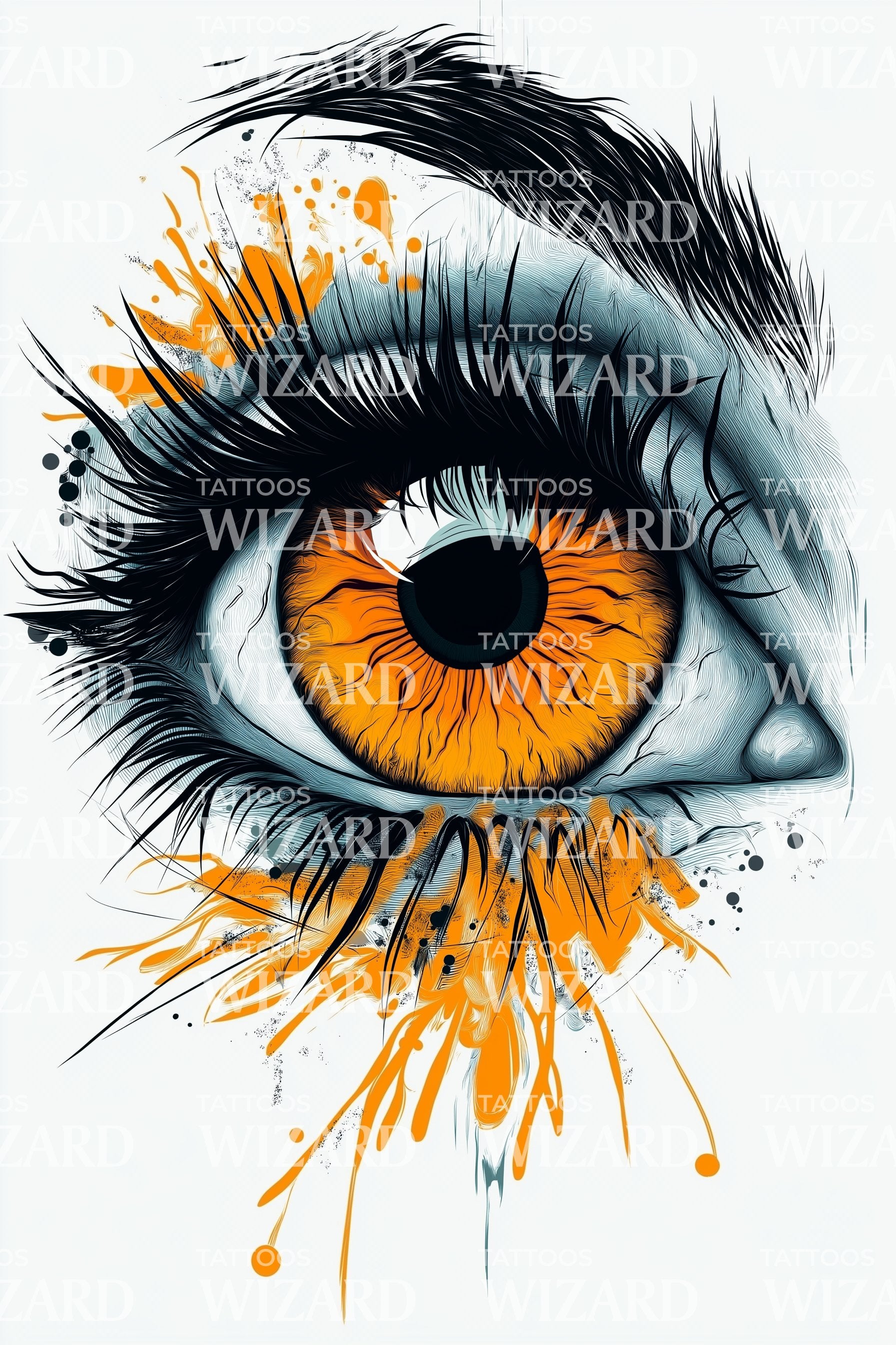 用这款抽象纹身设计点亮你的本质。富有魅力的琥珀色调与炽热色彩融合,呈现出非凡的水彩眼睛图案。绘画与飞溅技法的结合唤起深邃的神秘感、冒险精神和热烈情感。让每一次目光都留下深刻印象。