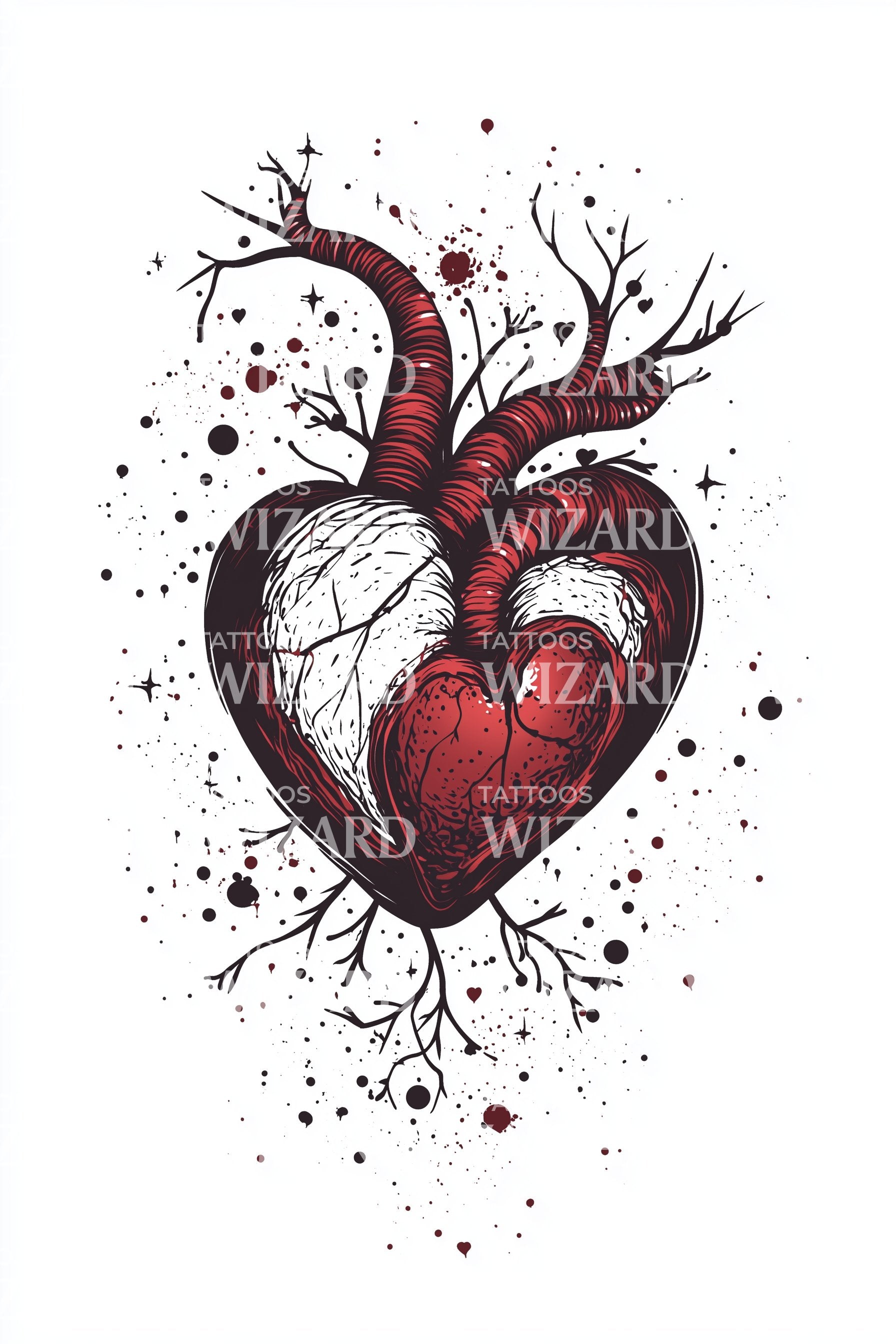 体验解剖学与艺术的融合,这款水彩纹身设计展现了精美绘制的解剖心脏,象征着激情与生命本身。柔和的色彩飞溅增添了梦幻感,细腻的血液暗示更提升了情感的强度。非常适合大胆而充满热情的你。