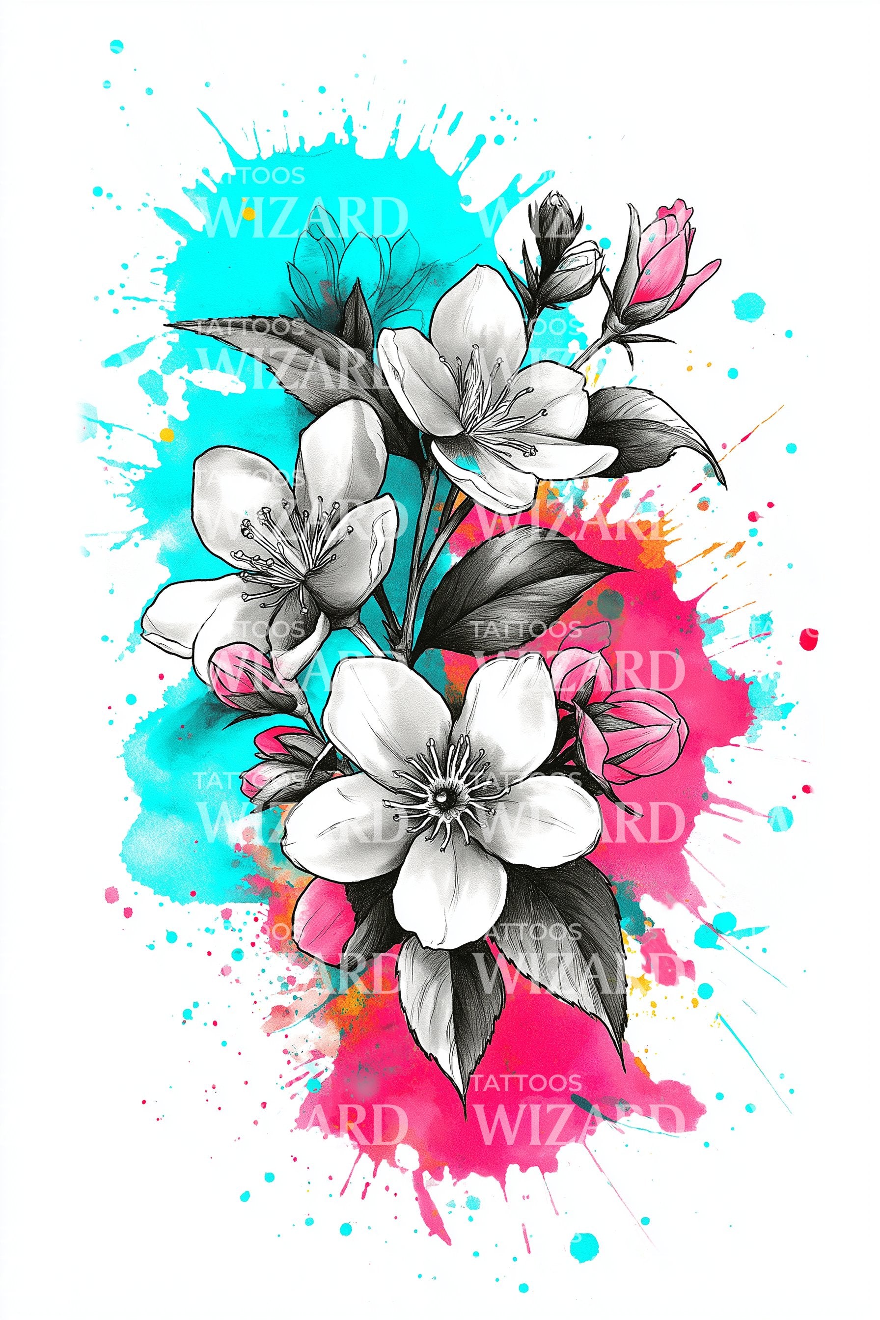 体验这款水彩纹身设计中奇幻与自然的独特融合。它展现了一簇迷人的花卉,细腻描绘出水蓝与白色的层次。为欣赏鲜明柔和色调及花卉幻想奇趣魅力的您,带来艺术的表达。