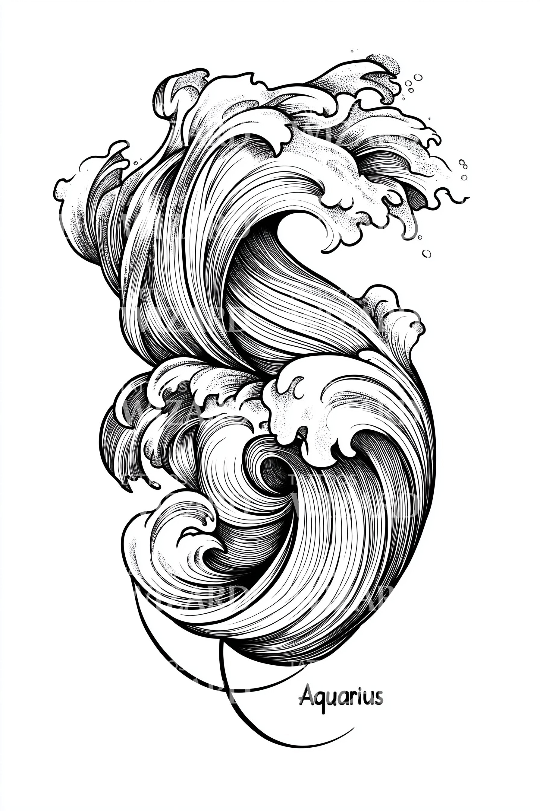 Fineline surf rises in sculpted arcs, stippled foam and ribboned currents curling into a celestial S. Aquarius breath flows through water’s lift, a union of air and tide, change and clarity. Wearing it feels like rising with the swell, visionary, fluid, resilient, endlessly in motion, calm, creative renewal.