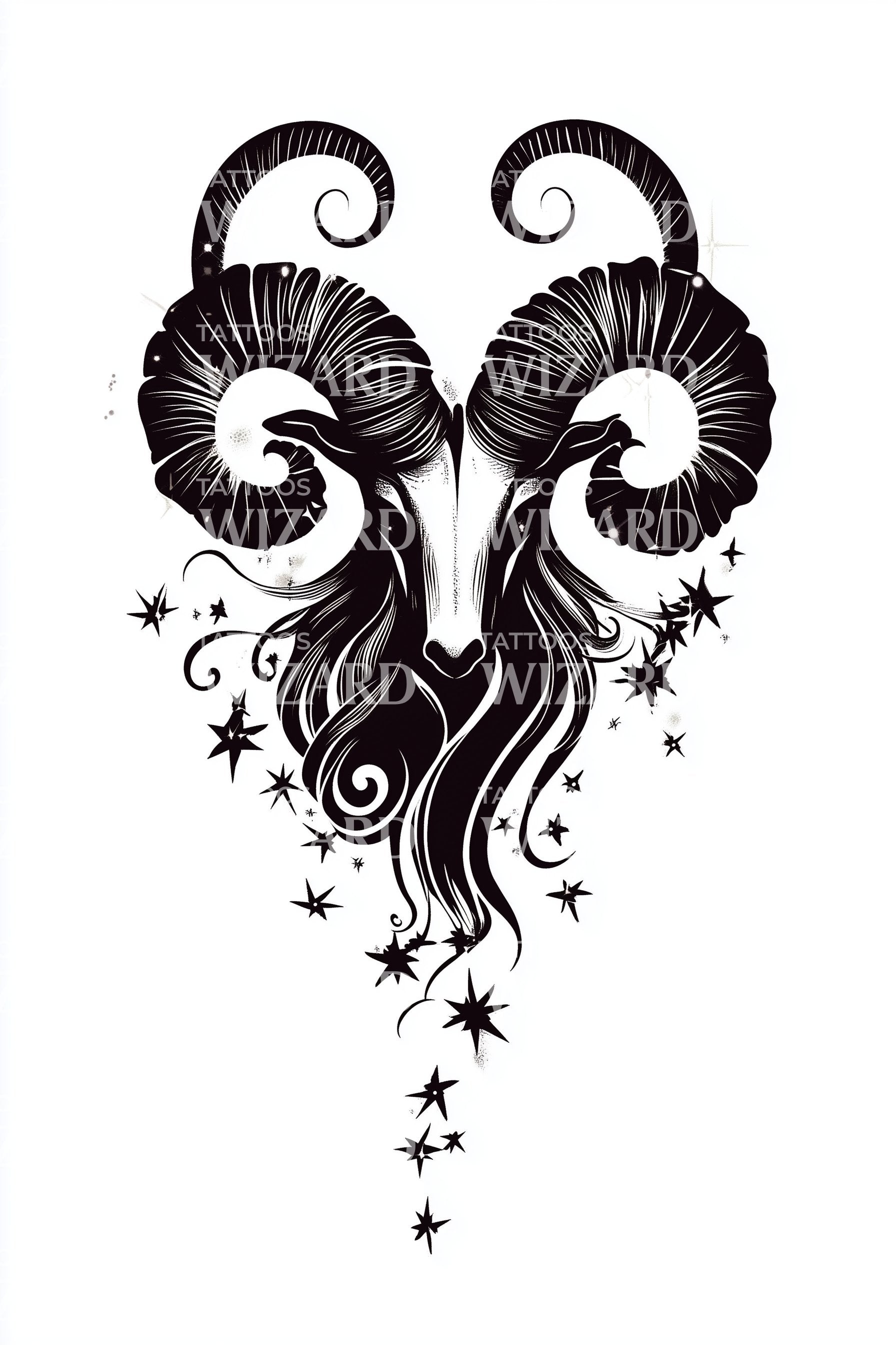 沉浸于宇宙强大能量之中,这款白羊座黑线条纹身设计展现无遗。公羊的骷髅与角的威严融合,象征你大胆的白羊精神。其复杂的星象灵感细节散发神秘与魔力,使这款设计成为你星座的引人入胜的见证。