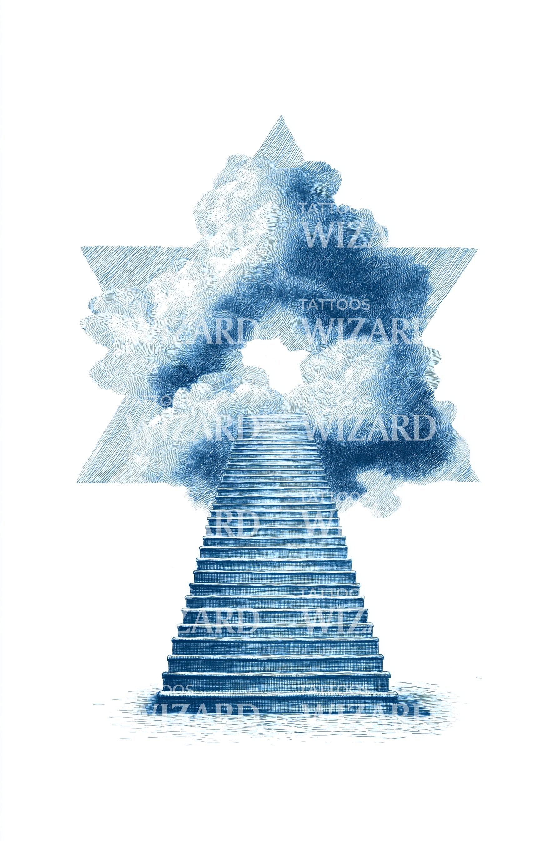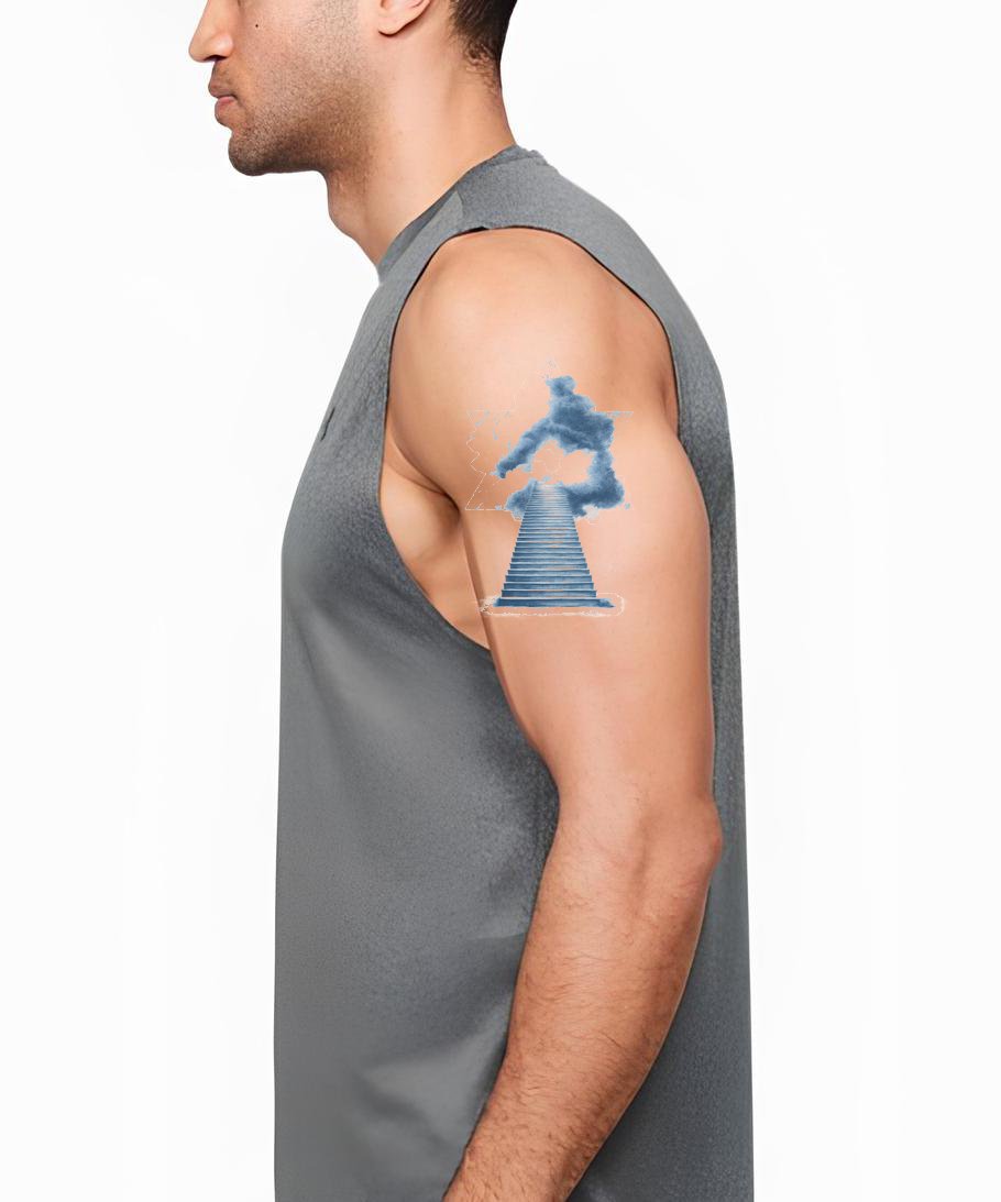 拥抱你的旅程,这款水彩纹身设计融合了几何图形、箭头和阶梯,采用诱人的蓝色色调。象征着进步之路,为你的肌肤带来抽象的艺术表达。它非常适合那些寻求反映个人成长的独特设计的人。