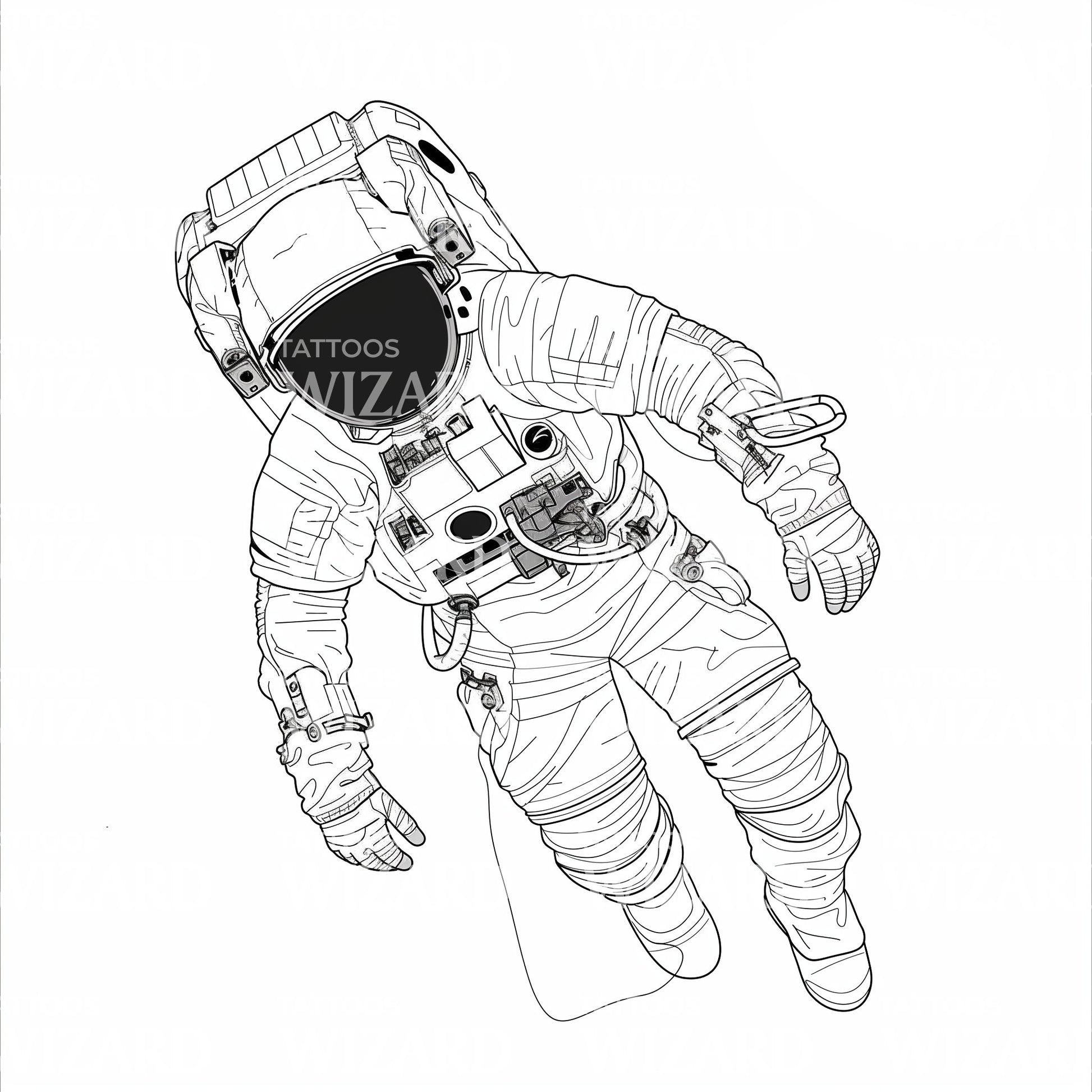 探索边界之外,这款细线宇航员纹身设计让你沉浸在美国太空文化中,展现出一件令人惊叹的作品,唤起宇宙的神秘。被宇宙、星星和银河的复杂细节所吸引,精致的线条勾勒出梦幻的画面。大胆梦想,冒险在每一笔细腻的墨水中等待着你。