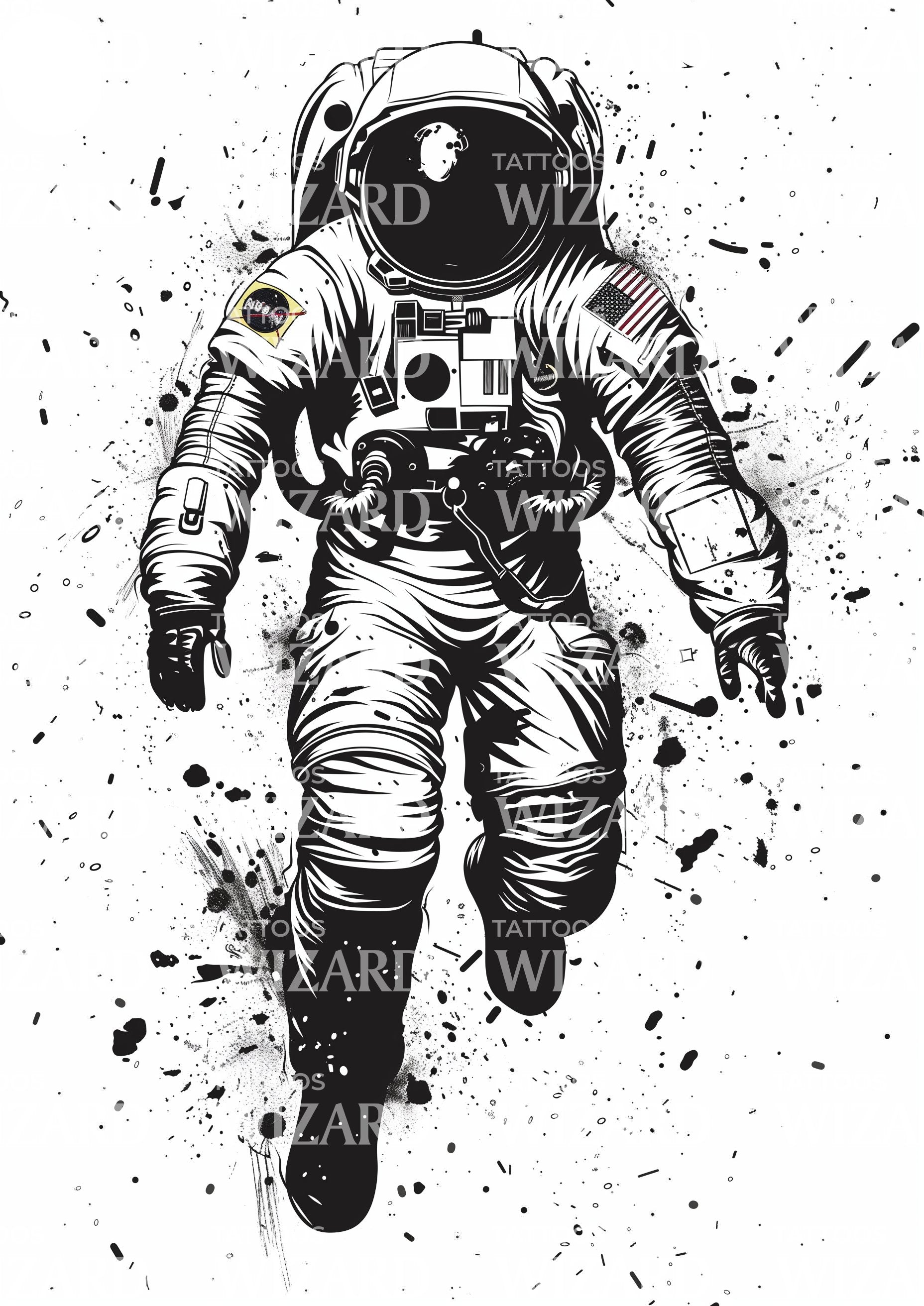 请欣赏这款精美的黑灰色宇航员纹身设计的天体奇观。沉浸在美国艺术与宇宙奥秘的宇宙融合中。美学上封装了银河、星星和无限宇宙,这一设计是真正超凡美的见证。