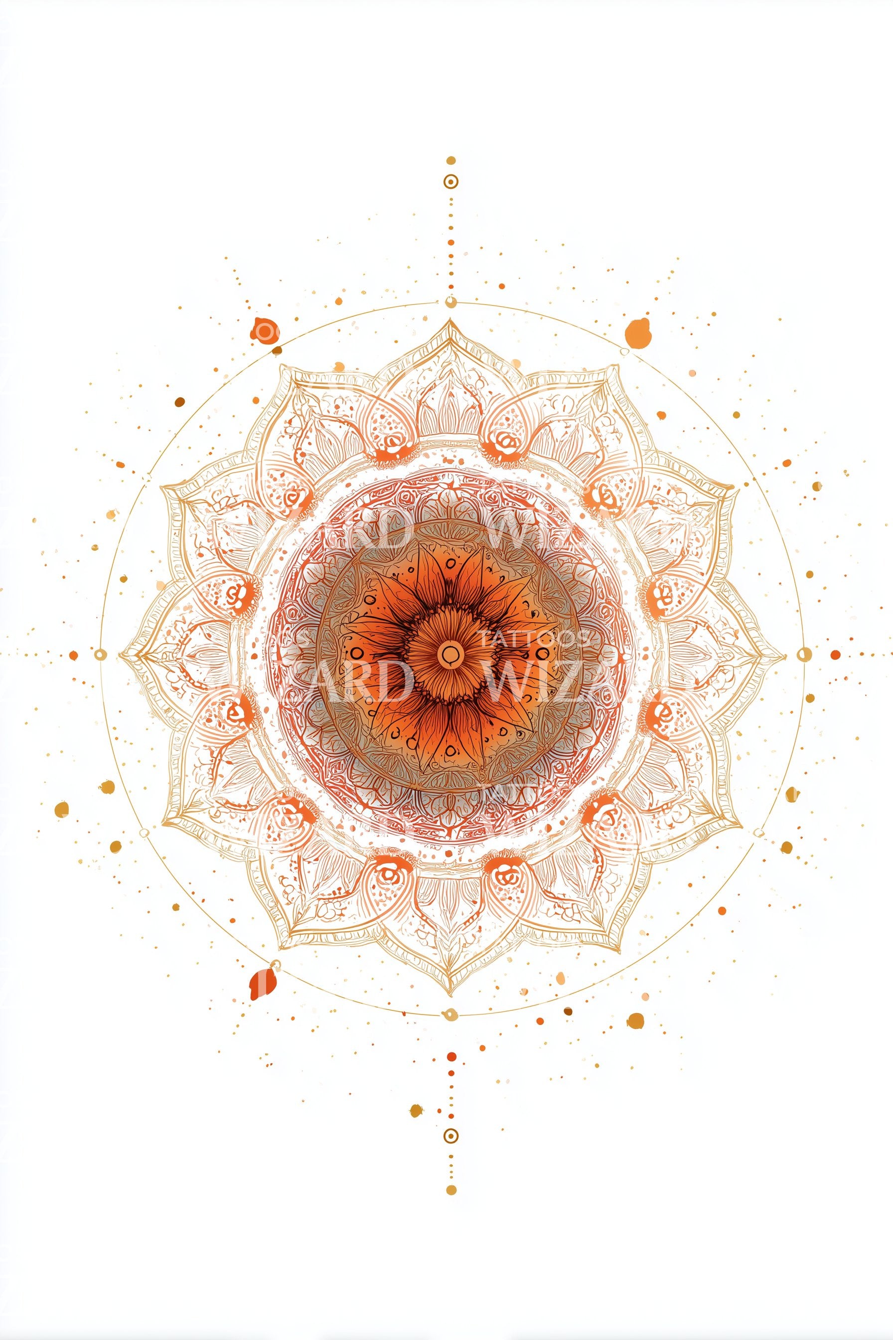 用这款精致设计的曼陀罗纹身点燃你的气场。它以充满活力的橙色调为主,辅以细腻的点描工艺,完美融合了独特的艺术元素。让你的肌肤散发力量与生命力,这个充满活力的能量象征将为你带来非凡光彩。