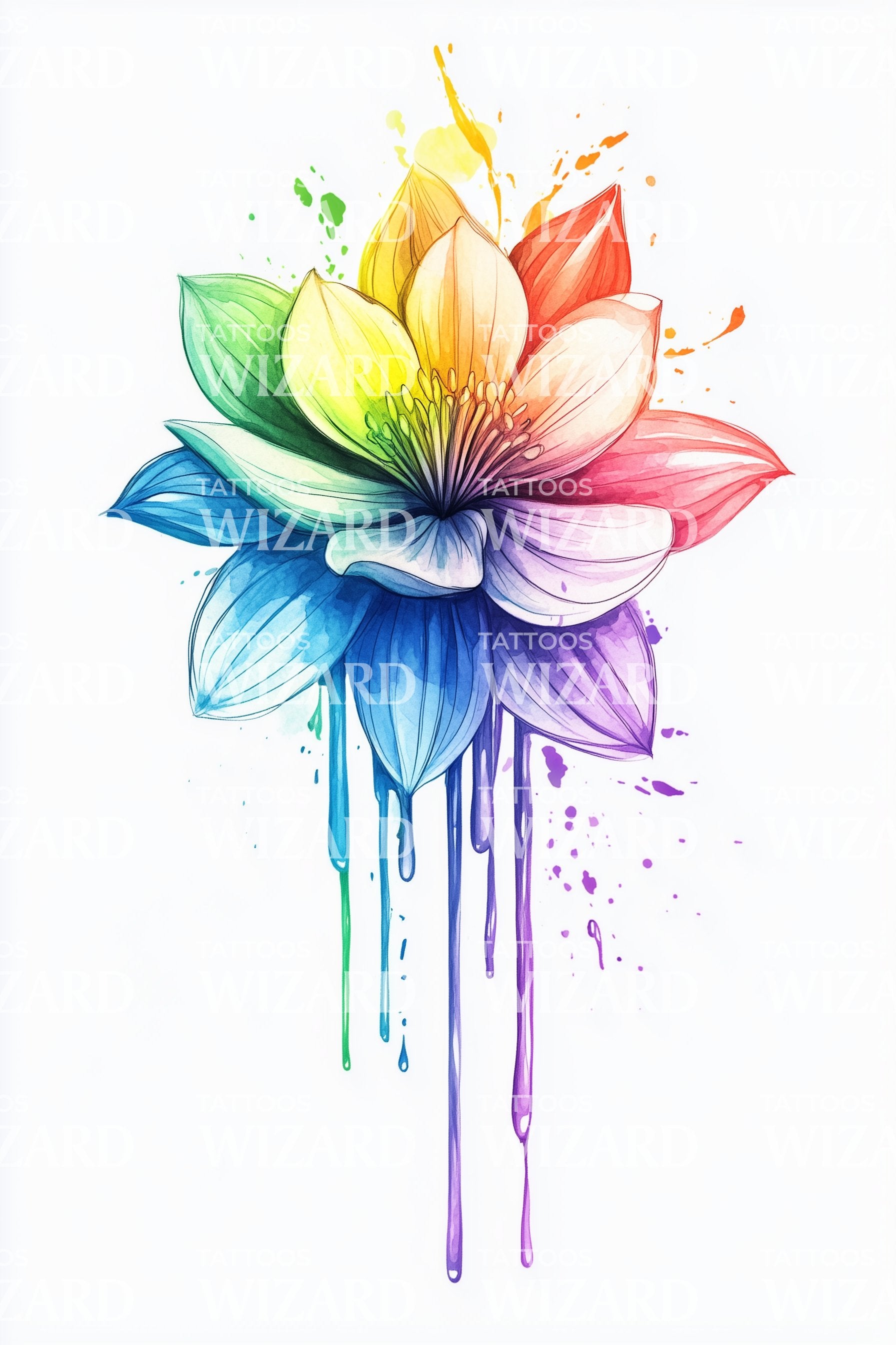 沉浸于这款水彩纹身设计带来的精神之旅,设计中盛开的莲花与绚丽的极光交相辉映。鲜艳的色彩方案如同一束花卉色调,在肌肤上优雅流淌,将美丽与灵性交织,展现出令人着迷的艺术魅力。