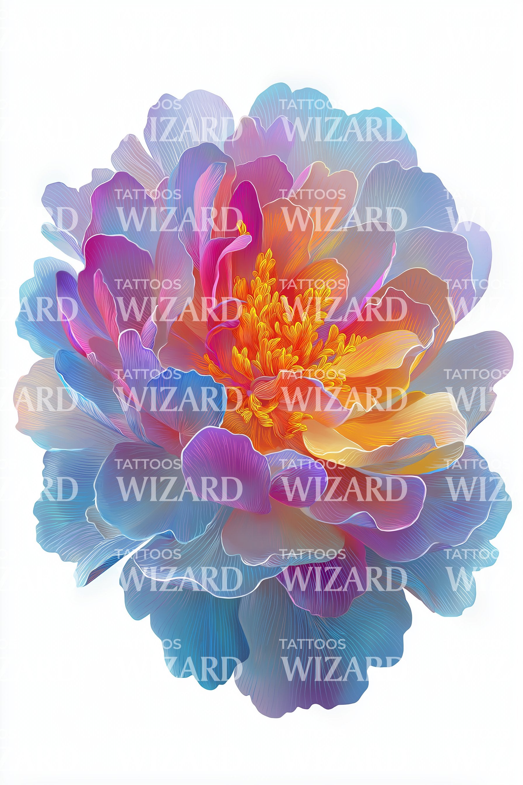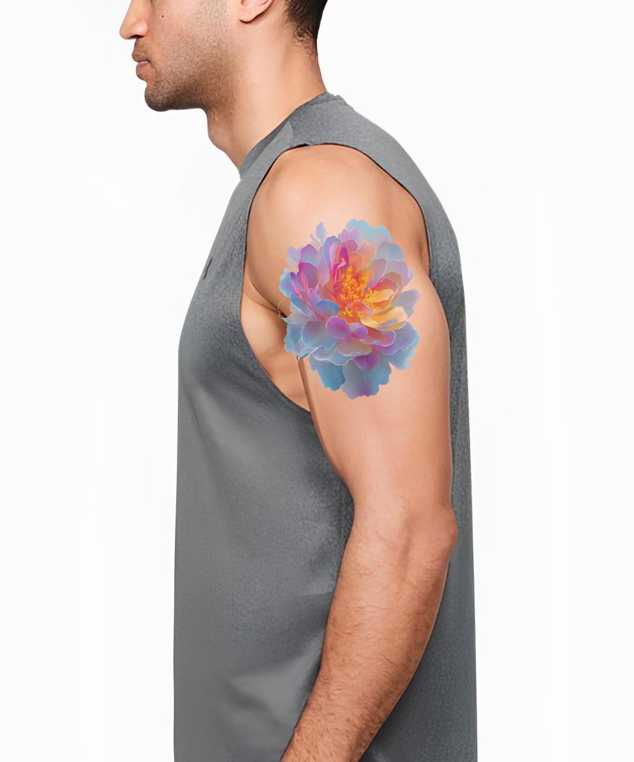 用这款水彩牡丹纹身将迷人的色彩浸润你的肌肤,精彩地捕捉了神秘极光的渐变色调。它呈现出色彩与写实的非凡融合,绽放出生命的活力,展现出自然与优雅的艺术气息。真正体现了美丽与魅力的化身。