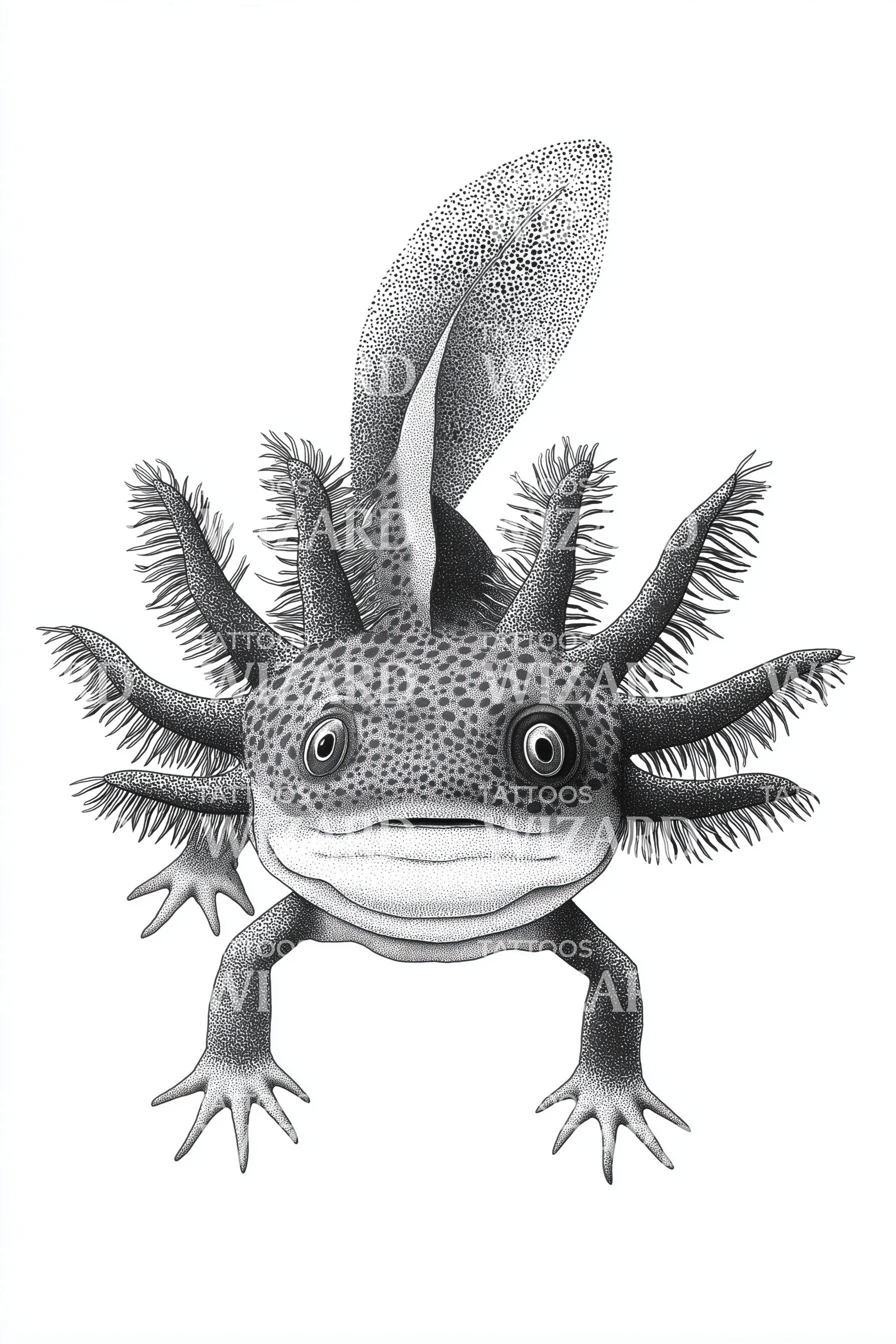 Smiling Axolotl Portrait Tattoo Design