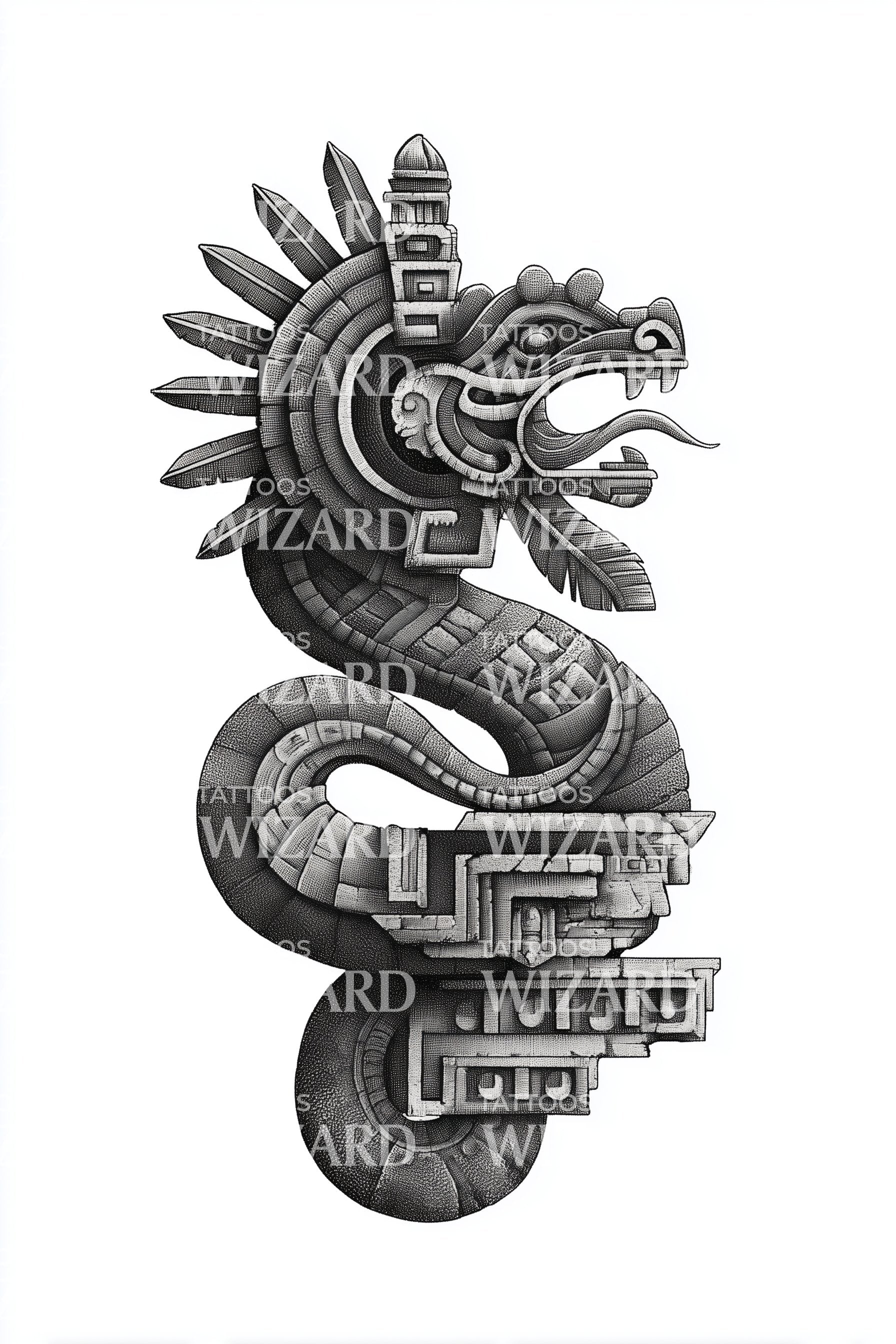 阿兹特克羽蛇纹身设计