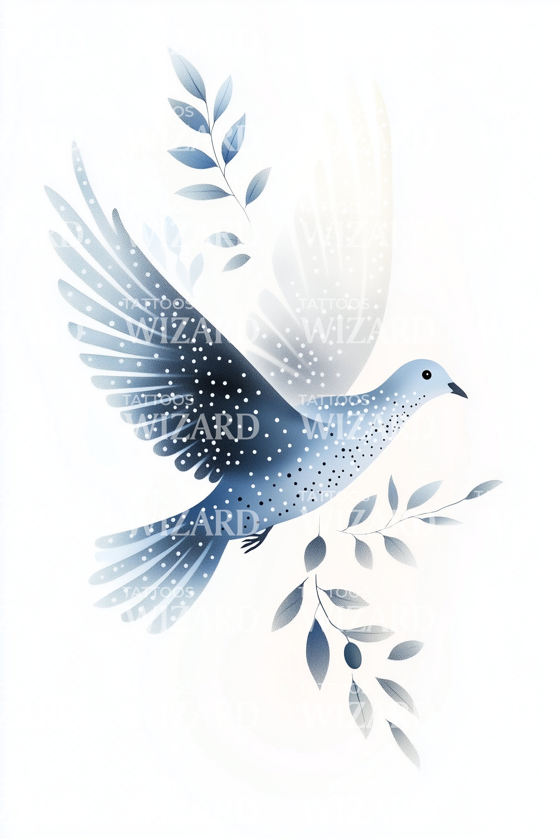 发现这款水彩纹身设计中的和平与信仰象征——一只展翅高飞的鸽子。采用宁静的蓝色调绘制,这款设计融合了精美的水彩技法,为您的纹身收藏增添独特而艺术的气息。非常适合欣赏鸽子带来的宁静与安详的人士。