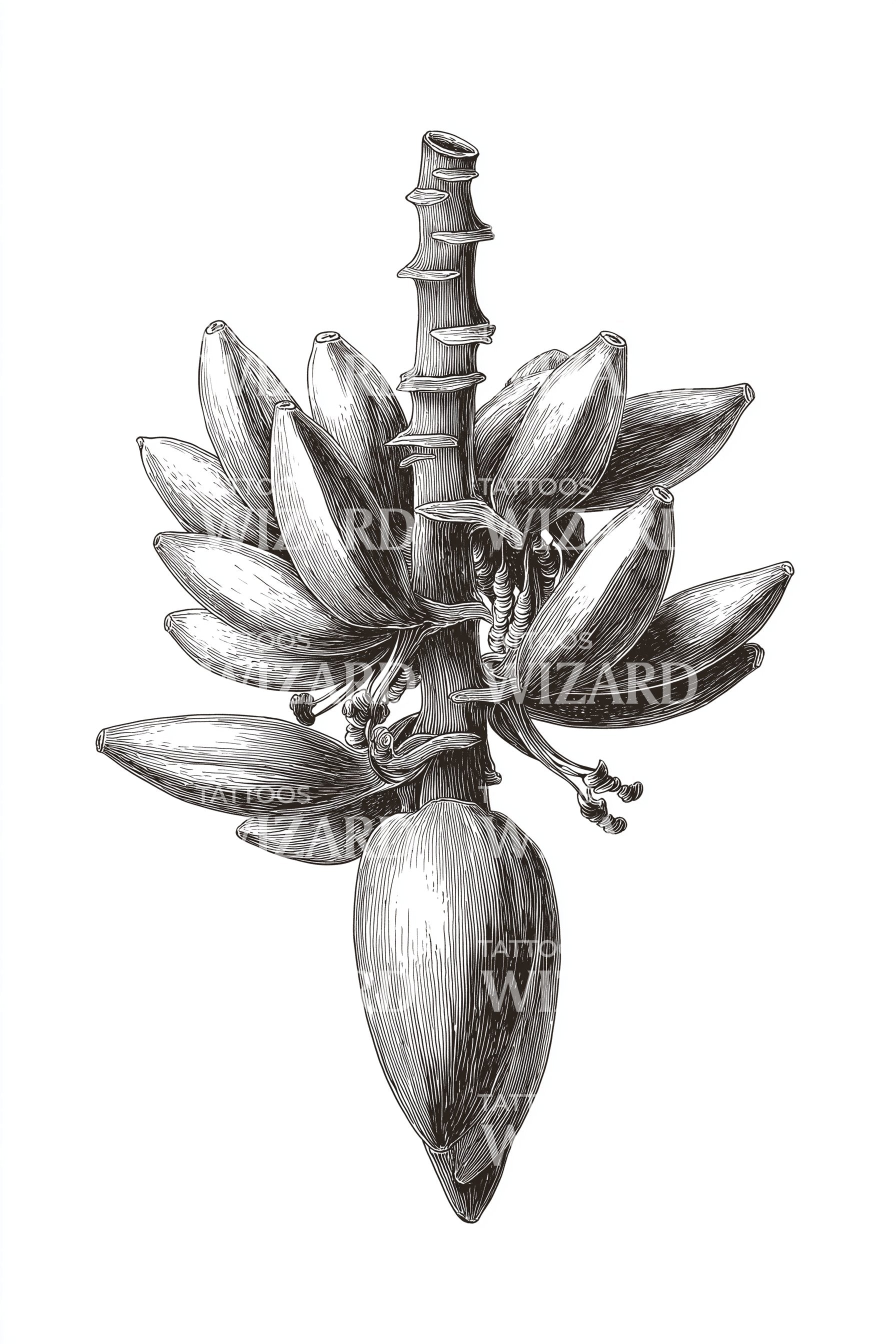 Banana cluster, fruit as a promise: abundance built from patience, sweetness earned in stages. A tropical botanical sketch for the one who grows quietly, then arrives undeniable. You claim joy without apology, roots in heat and light. “Let your hunger become harvest.”