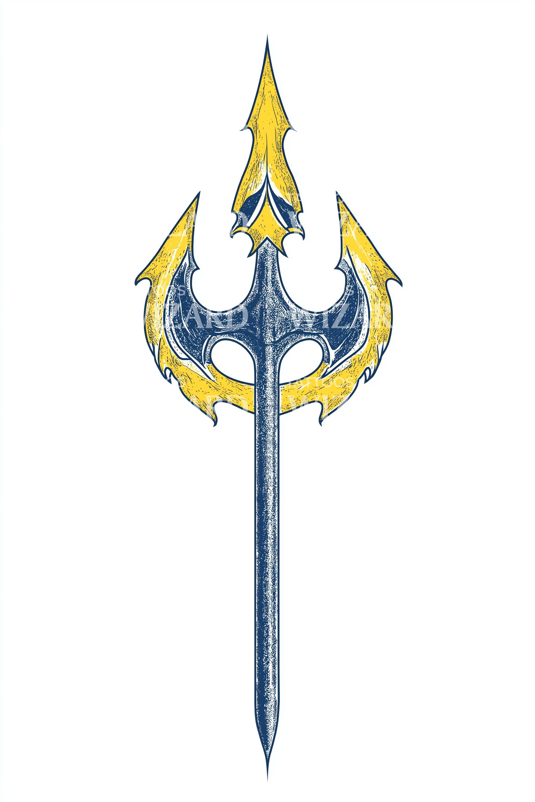用一款描绘巴巴多斯标志性三叉戟从碧绿加勒比海浪中升起的插画风纹身,庆祝岛屿自豪感。动感的矛尖穿透翻滚的海浪,映衬着旗帜灵感的金色与深蓝色调。清晰的线条和质感阴影唤起海浪飞沫与阳光照耀的波涛——大胆、永恒,对旅行者、当地人和海洋爱好者意义深远。