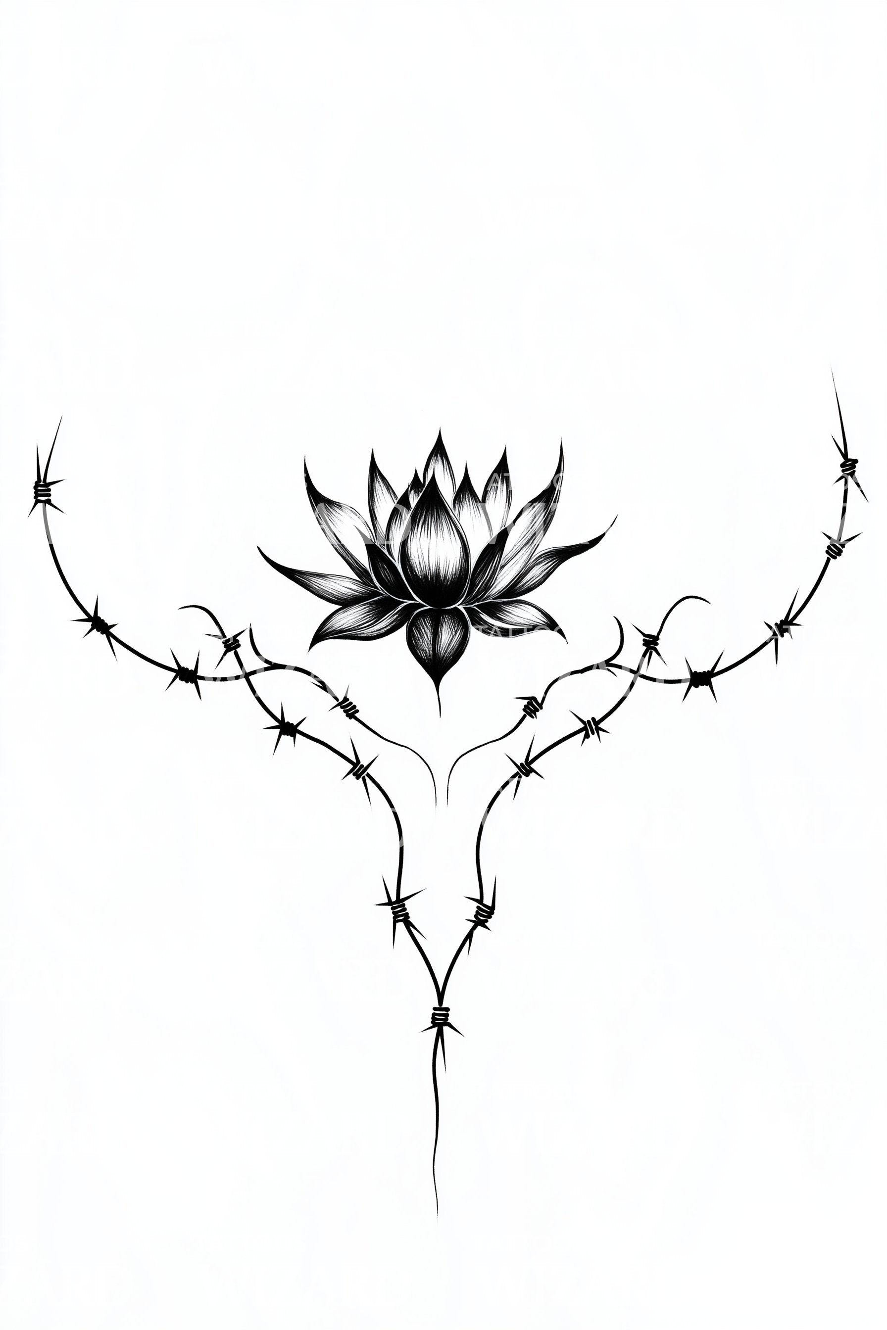 带刺铁丝莲花纹身设计
