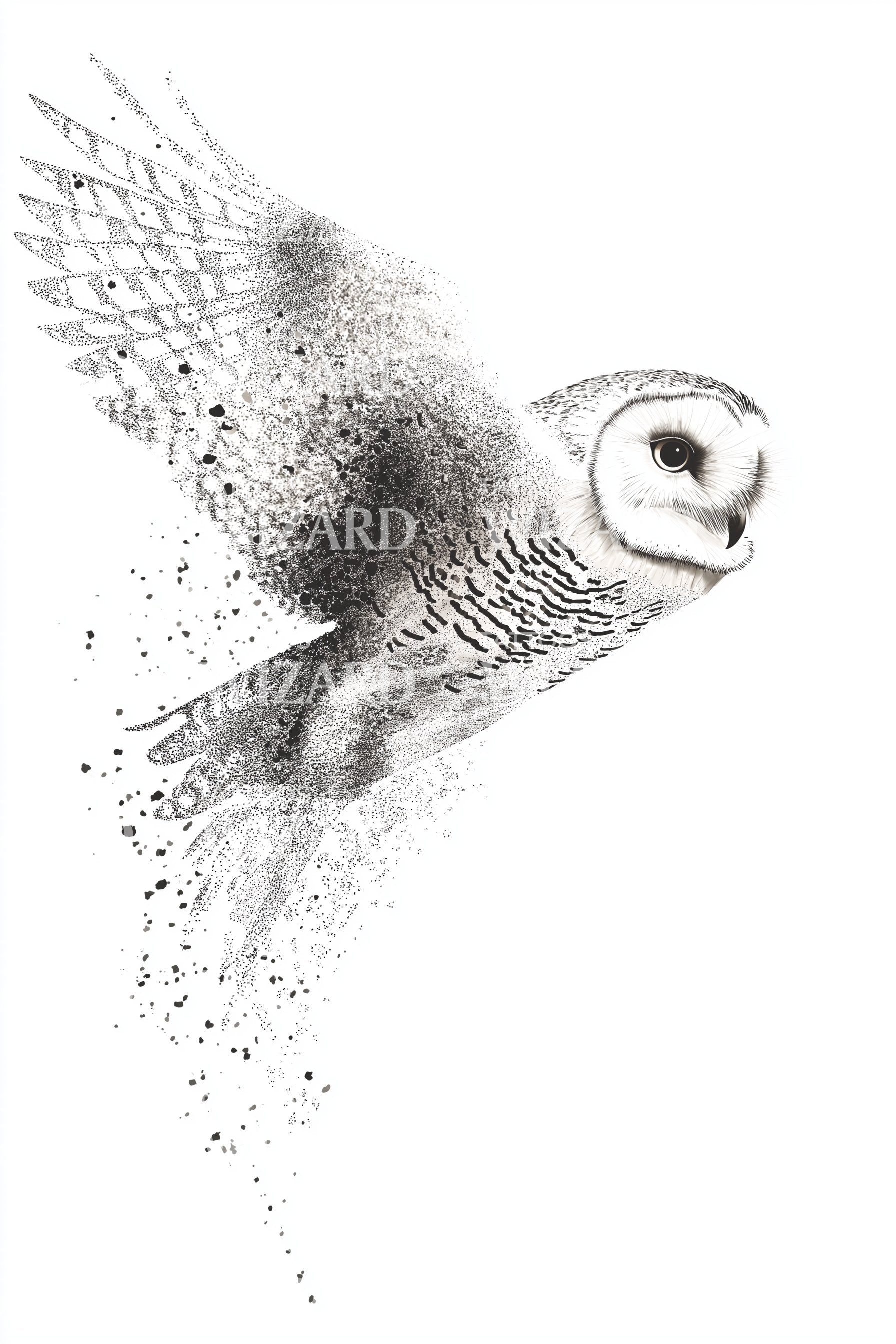 沉浸于大自然的魅力,这款素描纹身设计完美捕捉了仓鸮的优雅与飞翔,为你的身体增添迷人的魅力。这只鸟类纹身不仅仅是一个设计,更是猫头鹰所象征的野性自由与智慧的见证。