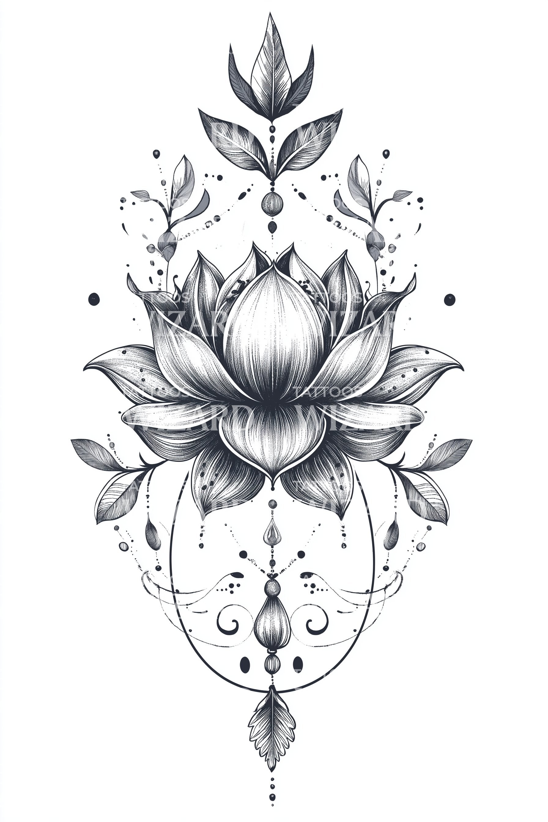 这款精致而引人注目的纹身设计将莲花的纯洁与巴洛克艺术的丰富美学交织在一起,二者共同被一个装饰性的曼陀罗所包围。对于那些在复杂的花卉背景中寻求启迪象征的人来说,这不仅是一款纹身,更是一件宣言之作。