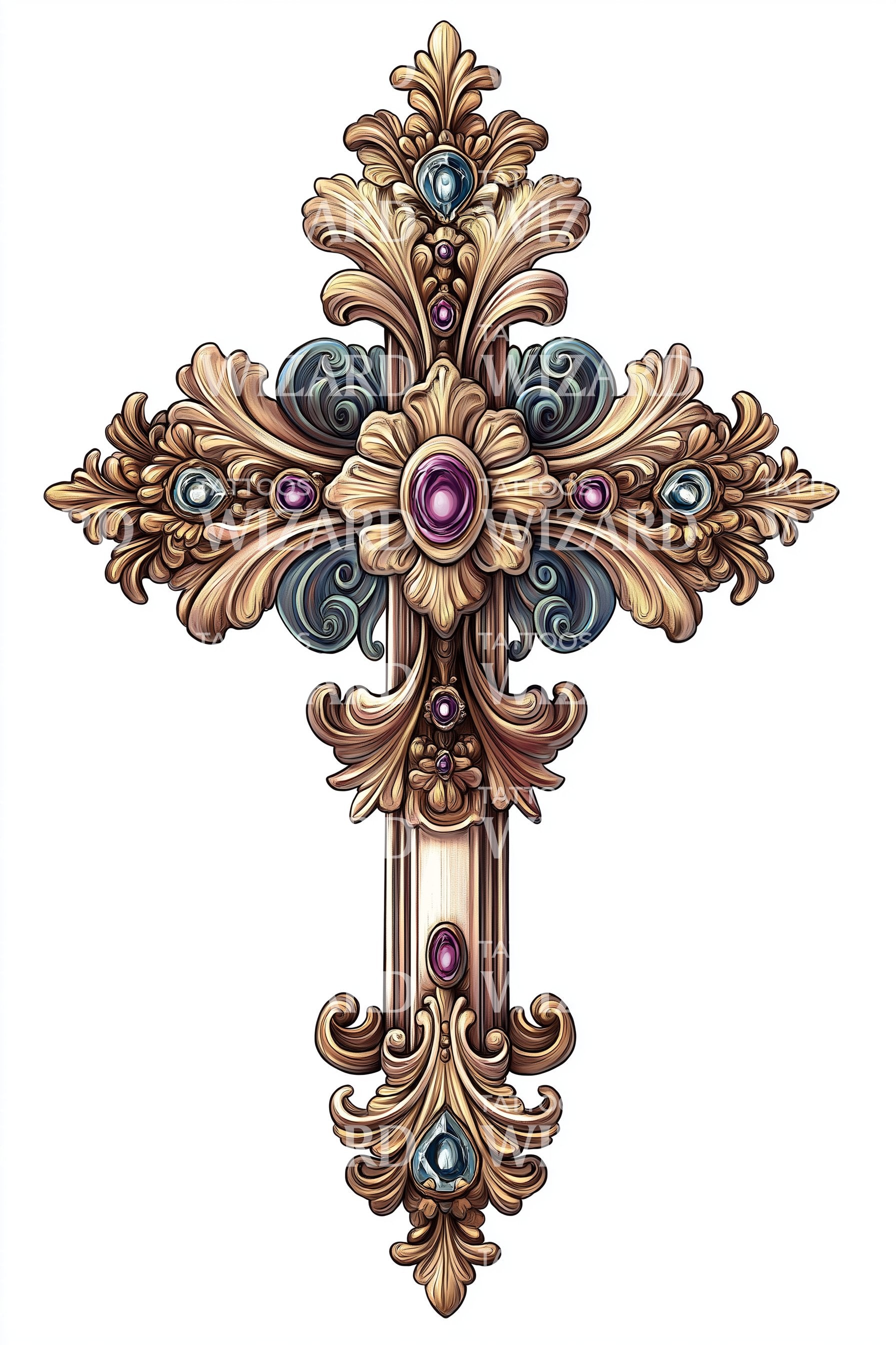 宝石巴洛克十字架纹身设计