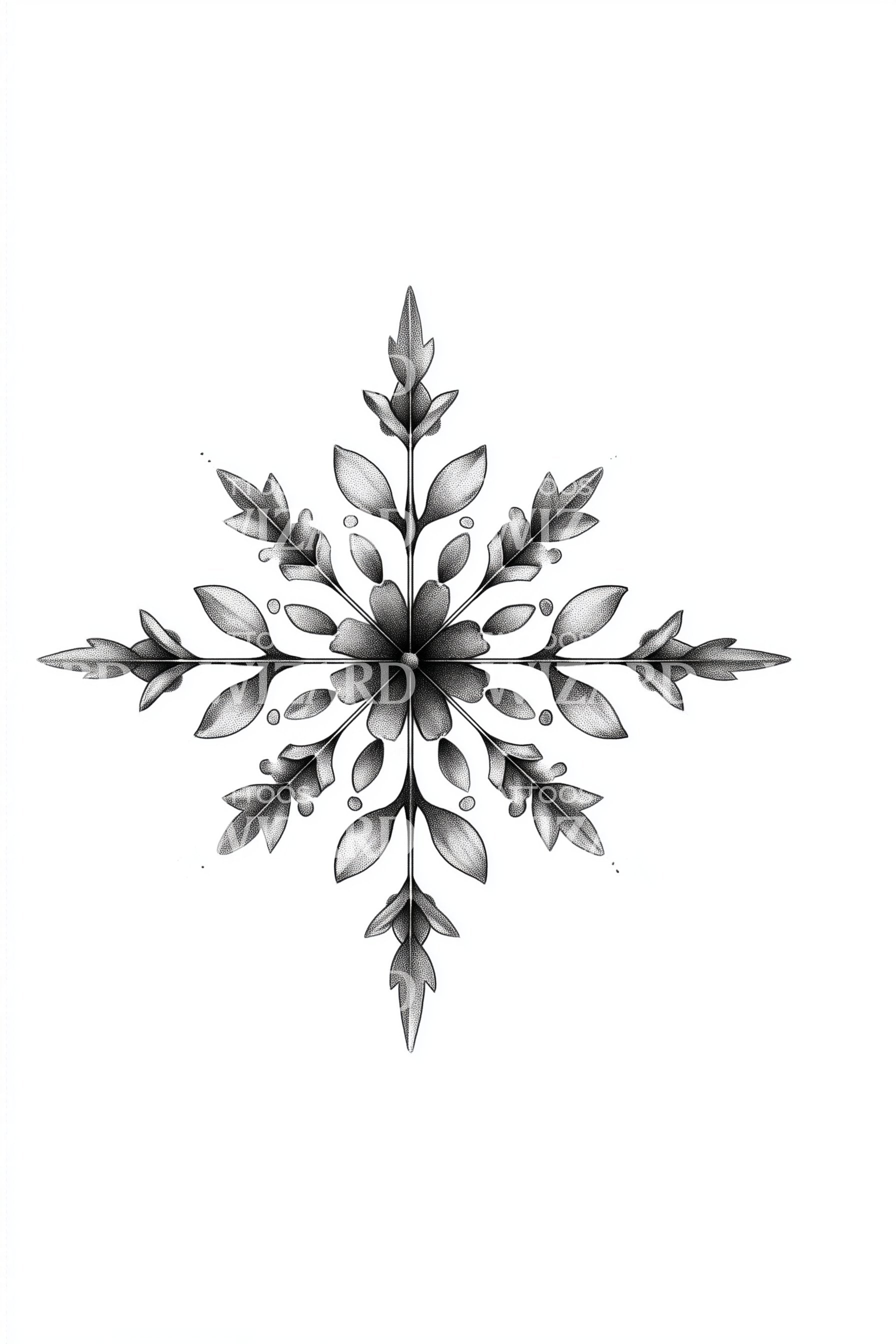 一朵优雅的巴洛克风格雪花在华丽的卷轴花纹中展开,将冬日的宁静与闪耀的水晶几何完美结合。这款装饰性纹身设计层叠细腻的花丝曲线与冰冷的切面,打造出适合手臂、肩膀或胸骨的永恒焦点。细腻而富有戏剧性,它以庄重的对称和精致的细节,赞美寒冷季节的美丽。