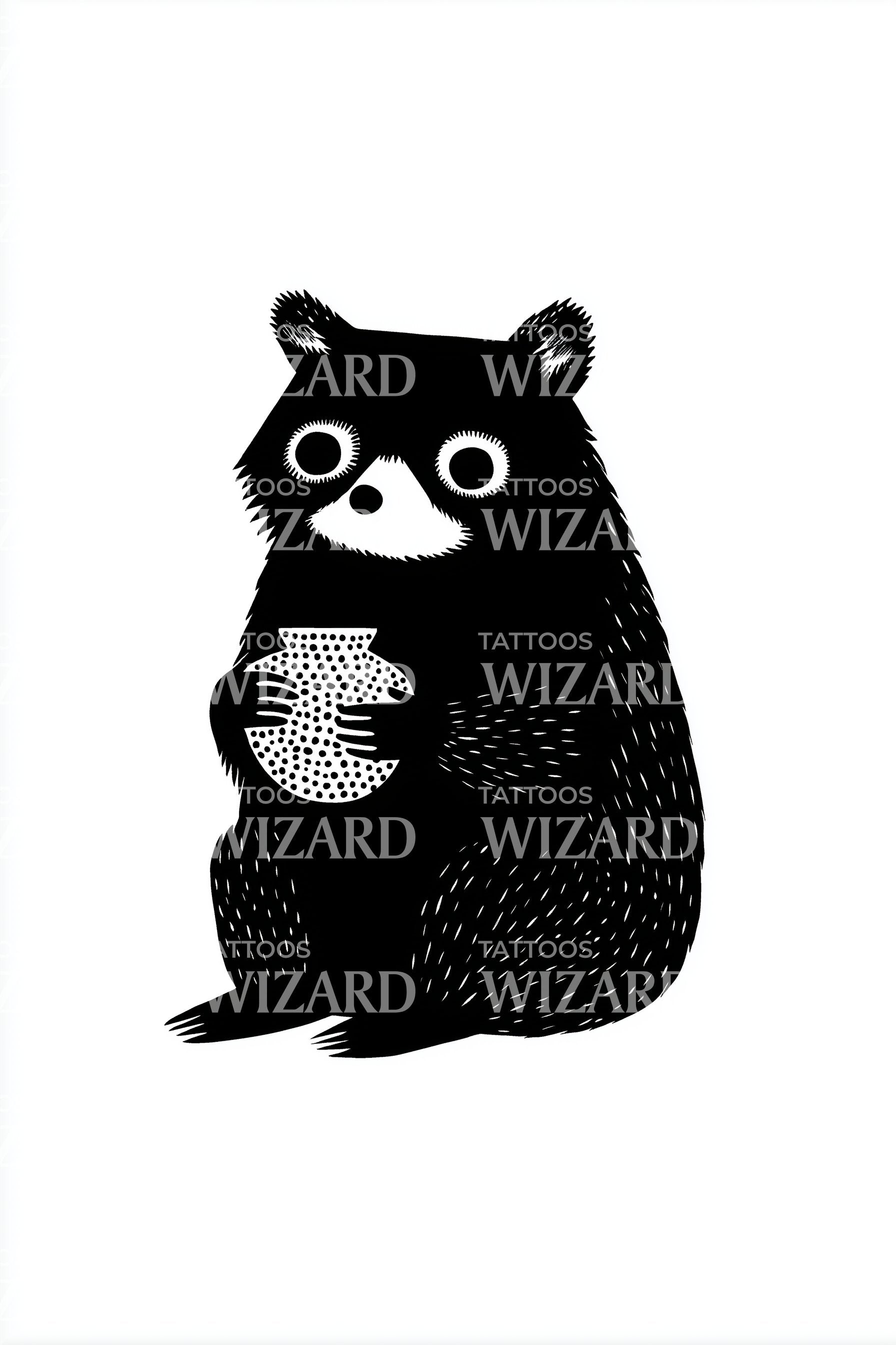 新潮抱抱熊,浓黑线条,碟形大眼和点缀的茶壶。象征温柔的力量与专注的仪式感;是舒适勇气与奇思妙想的吉祥物。感觉如同温暖的茶,既扎根又充满趣味。最适合纹在前臂、小腿、上臂或肩胛骨处,垂直曲线呼应其坐姿椭圆形。
