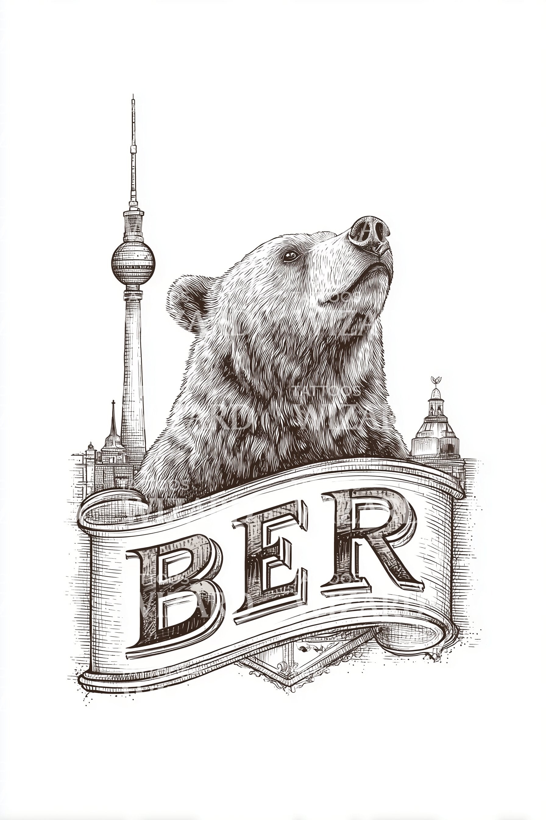 Fineline homage to Berlin, where a proud bear rises above a minimal skyline and the iconic tower, cradled by a scroll reading BER. Strength meets city grit, symbolizing resilience, wanderlust, and belonging. Wearing it feels grounded yet free, a quiet roar echoing through concrete and memory.