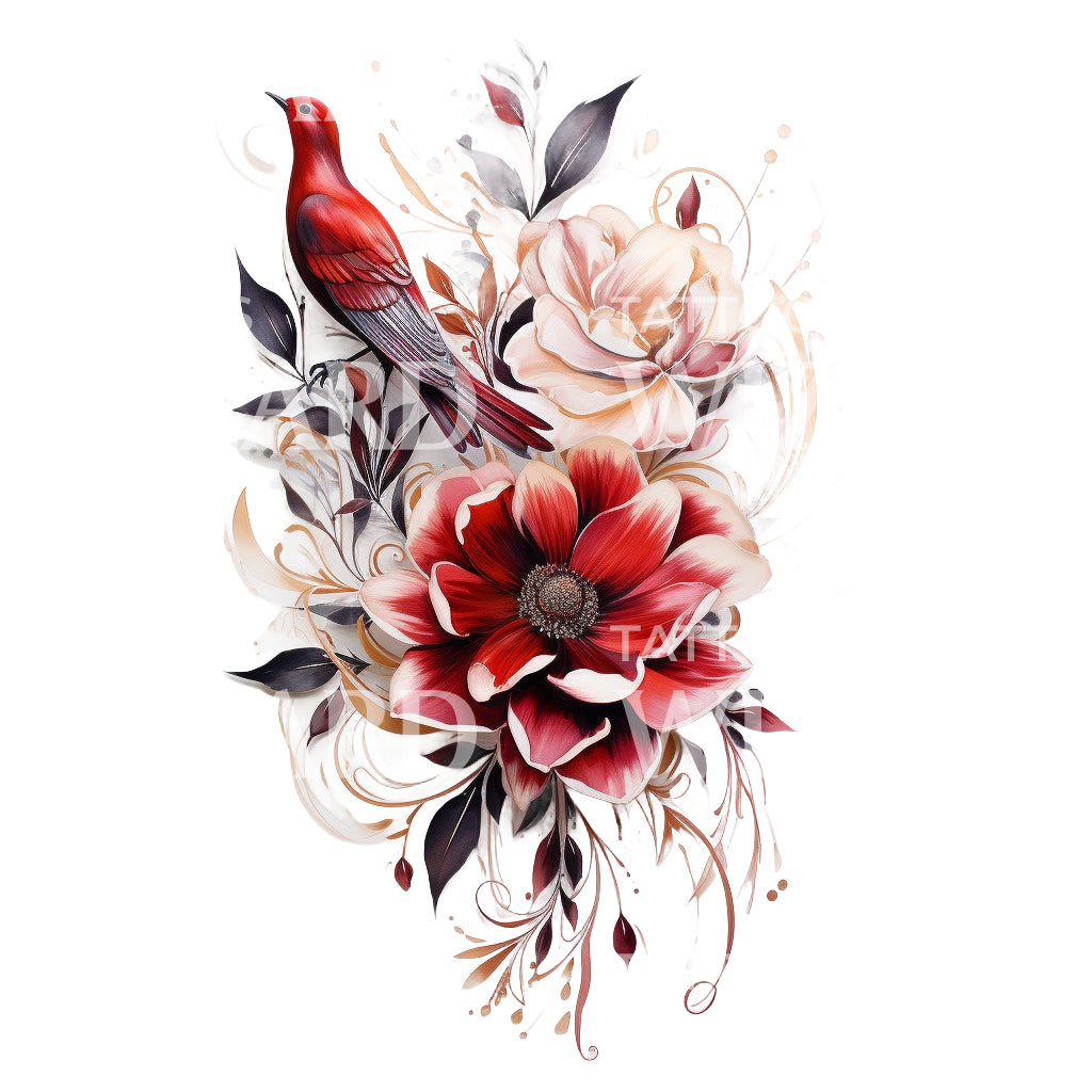 踏上这款复杂纹身设计的生动旅程。色彩鲜艳,充满激情的红色调,我们的作品展示了一只雄伟的鸟,象征着自由和抱负,栖息在一片罂粟花的绚丽中。动物与花卉王国的理想结合,必定能吸引任何人的目光。