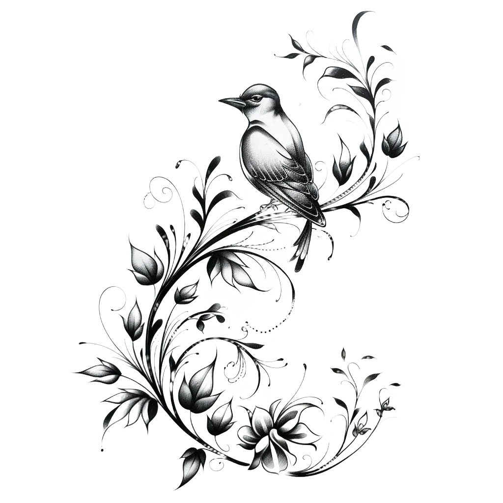 散发着极致优雅,这款黑灰色纹身设计完美结合了极简主义与复杂元素。拥有精致的鸟类轮廓,装饰着华丽的翅膀和花卉点缀,这件动物灵感的艺术作品展现出迷人的细腻感。非常适合喜欢简单而迷人的身体艺术的人。