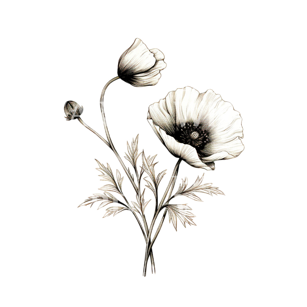 用这款令人惊艳的黑灰色罂粟花纹身设计展示你独特的风格。它生动地展现了精致的罂粟花,完美地叠加了黑灰色调,在你的肌肤上创造出一场花卉交响曲。这件精美的作品完美体现了优雅与自然。