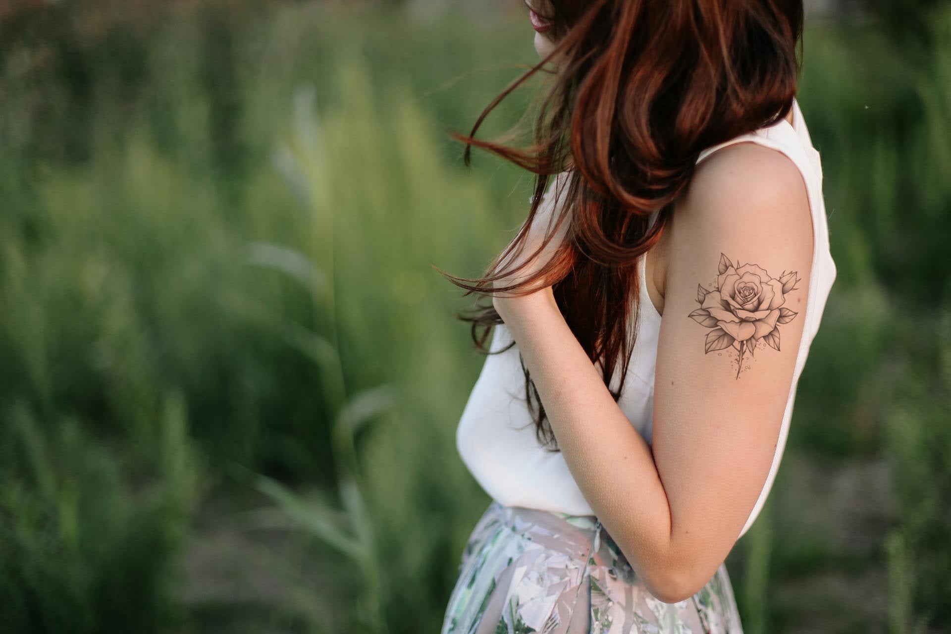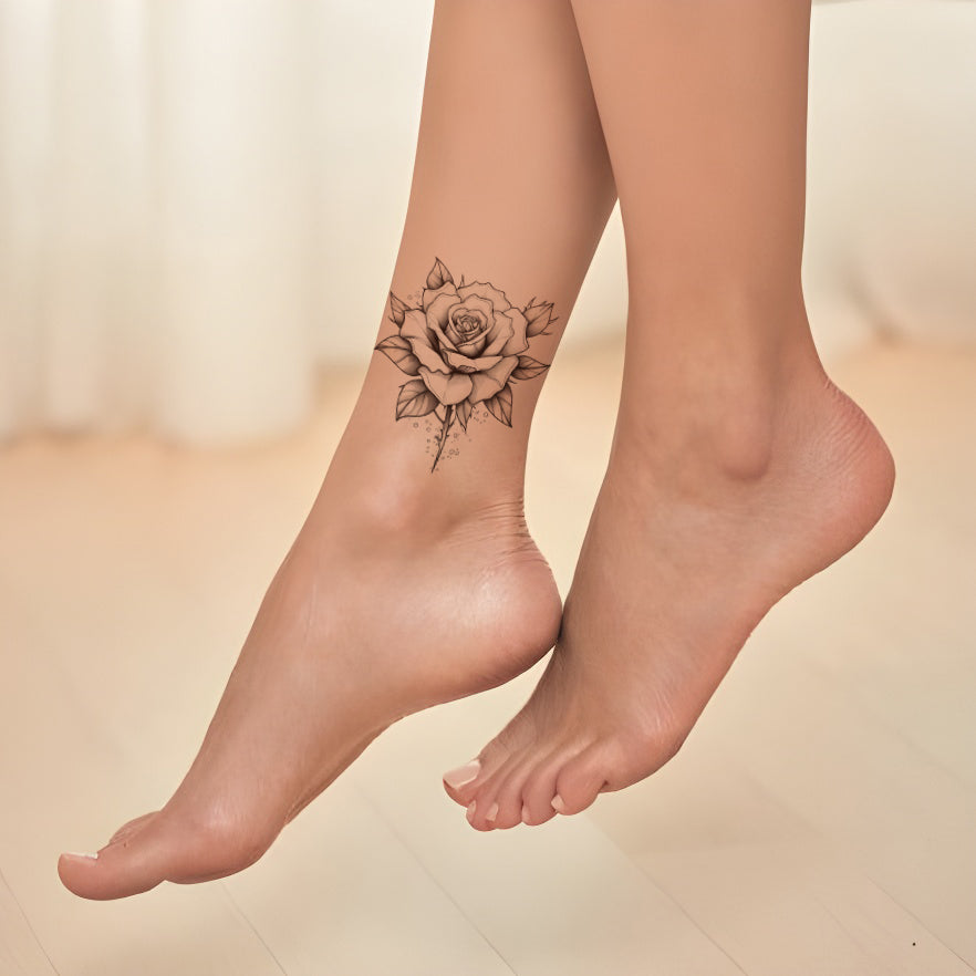 这款精致细腻的黑灰色纹身设计庆祝了玫瑰的永恒优雅。沉浸在大自然的艺术中,从花瓣的暗边到复杂的花卉特征。它不仅仅是一朵花,它代表着爱、神秘和不朽的美;是纹身爱好者的常青之选。