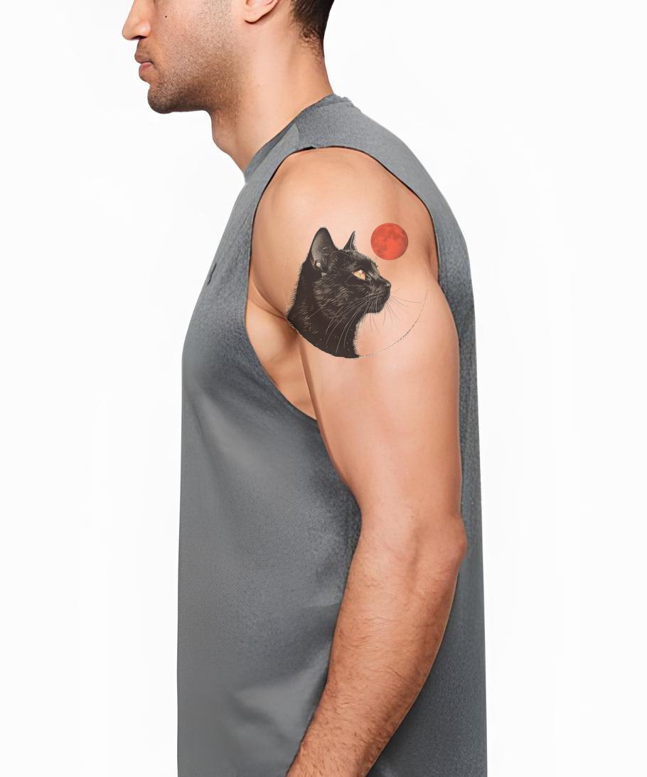 黑猫与红月纹身设计