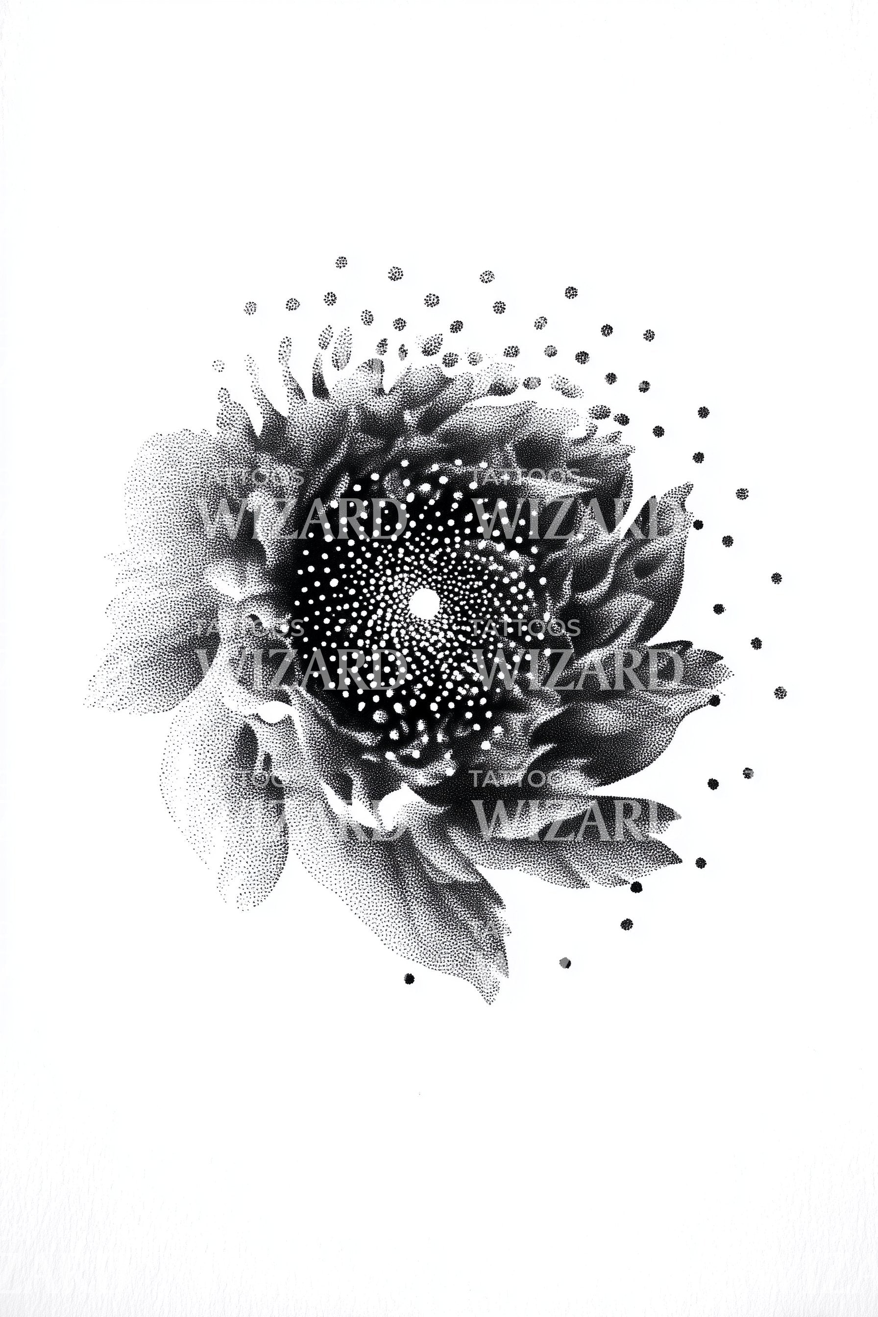 这款引人注目的黑色纹身艺术传达出强烈的对比感,融合了绽放与爆发的元素。设计灵感源自夜晚与花卉之美的结合,将黑暗与光明完美融合,呈现出迷人的视觉效果。选择这款精细纹身设计,为你的肌肤故事增添艺术优雅。