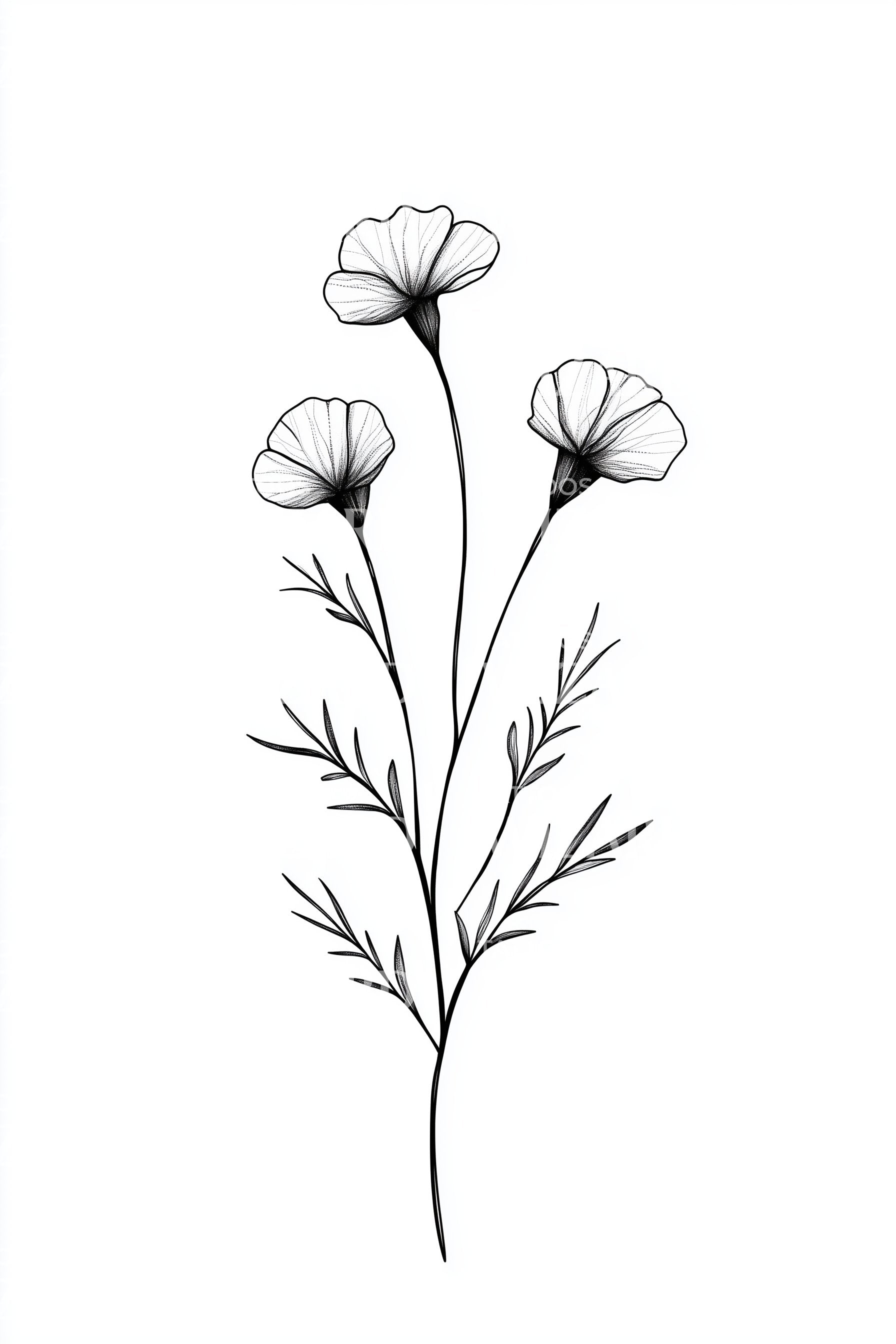 用我们的细线纹身设计展现您的优雅,呈现令人惊叹的精致三花绽放。这件精美作品融合了花卉的优雅与喷绘技法,巧妙地将艺术与自然结合。其细线描绘为您的肌肤赋予迷人而细腻的美感。