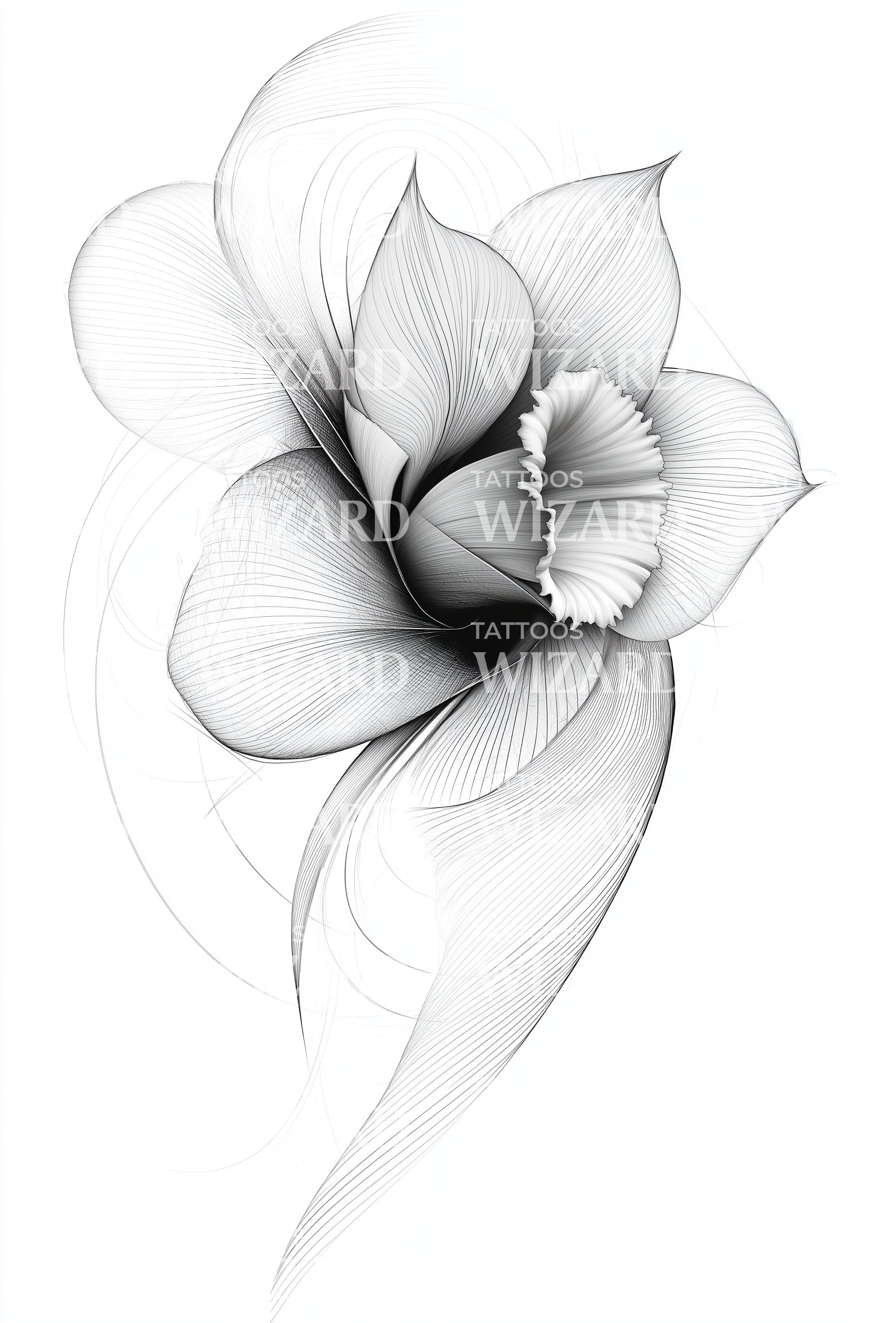 沉浸于抽象之美的世界,感受我们空灵几何纹身设计的魅力。精心打造的旋涡图案,轻松模仿神秘花朵的流动与绽放。此设计必将为您的独特风格增添迷人的气息。