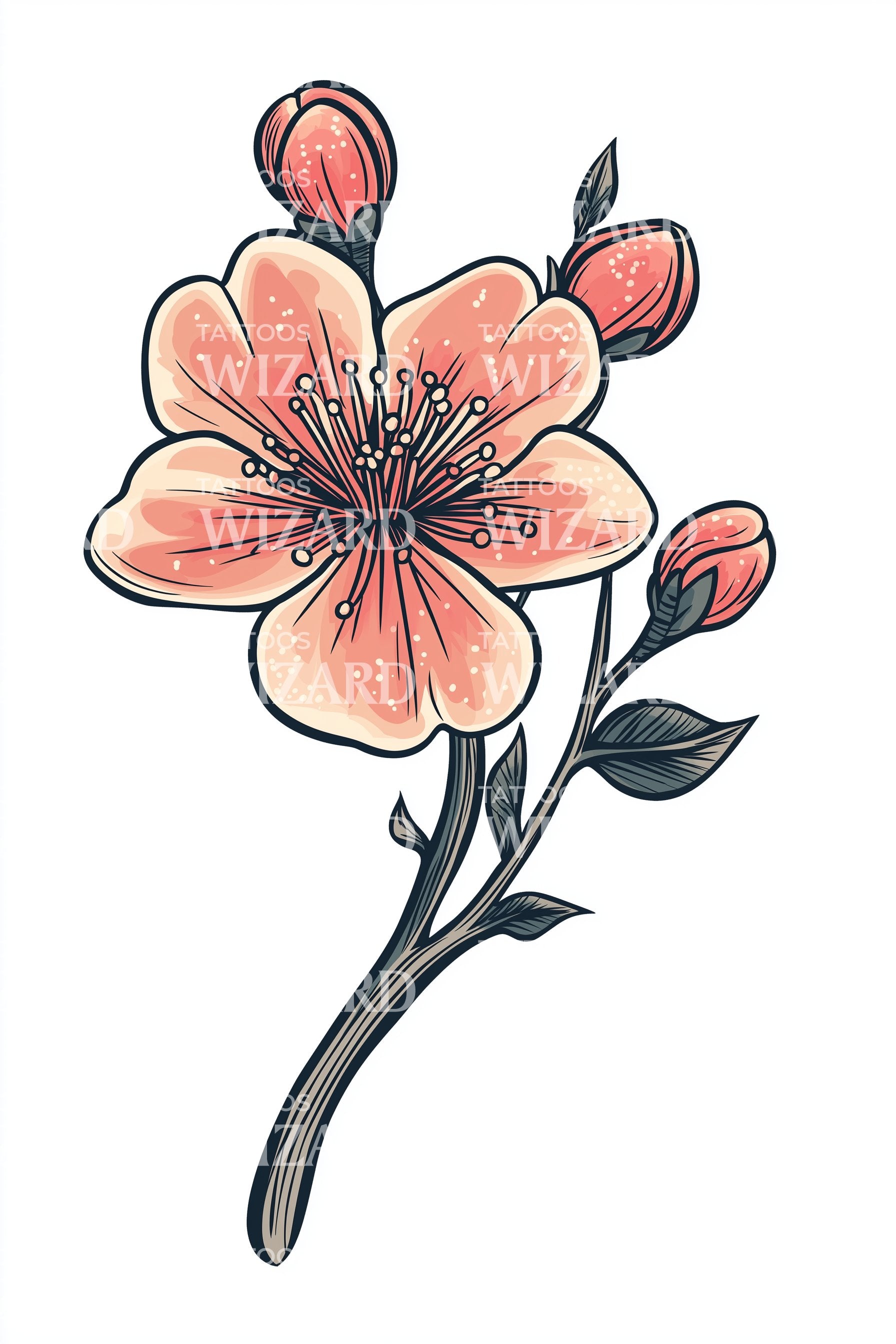 以精致的花卉纹身庆祝重生:桃花沿着优雅的枝条绽放,柔软的花瓣如春雨般洒落。植物线条与轻柔的水彩色调交织,打造出一件优雅、女性化的作品——清新、通透且永恒。非常适合前臂、锁骨或脚踝,象征着成长、甜美与永恒的新开始。