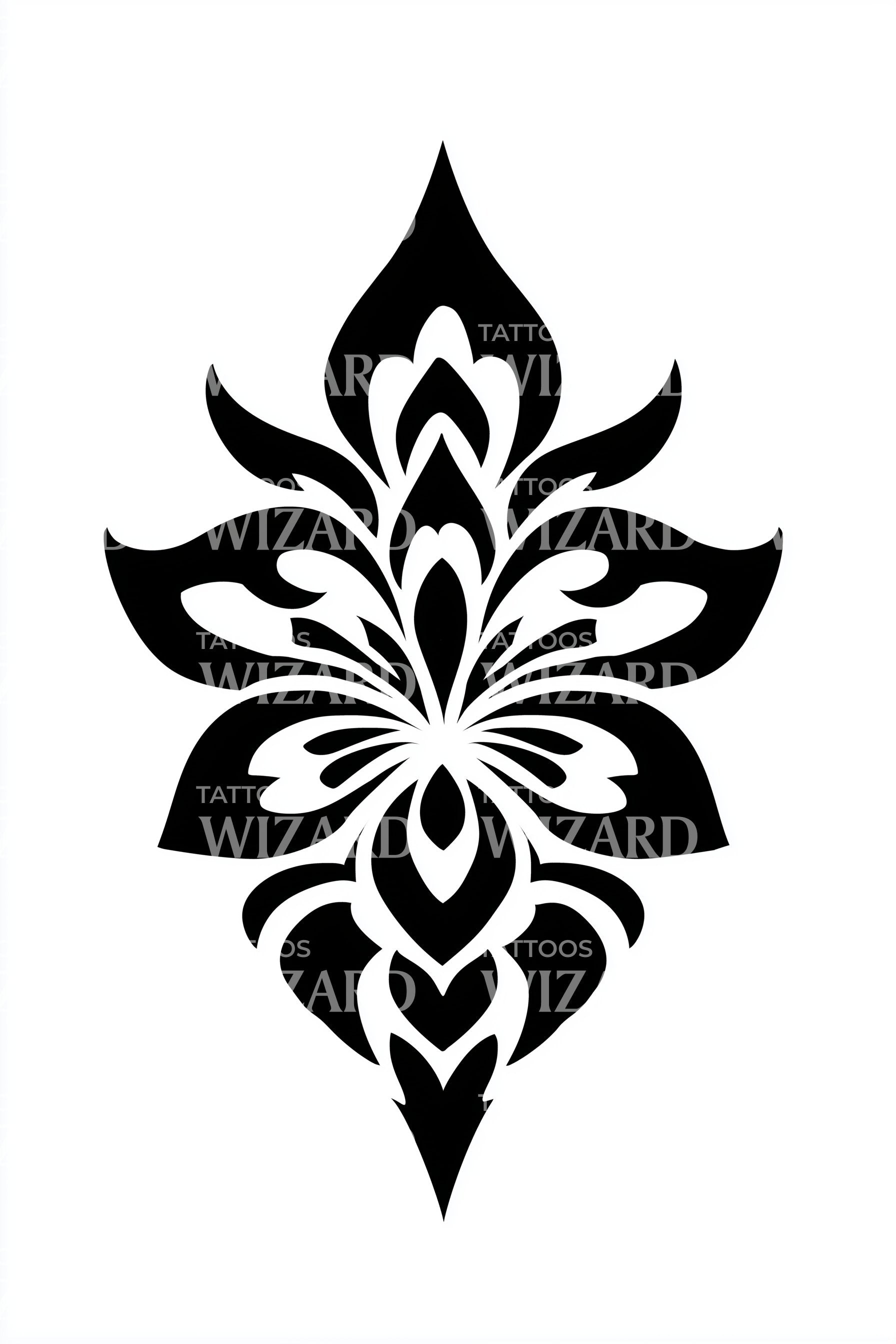 沉浸于花朵的宁静与花卉的活力,这款装饰性纹身设计展现了精致的黑色工艺和华丽的装饰,散发出迷人的流动感,为你的肌肤注入生命力。它融合了自然与艺术的美学,承诺带来永恒的风格宣言。