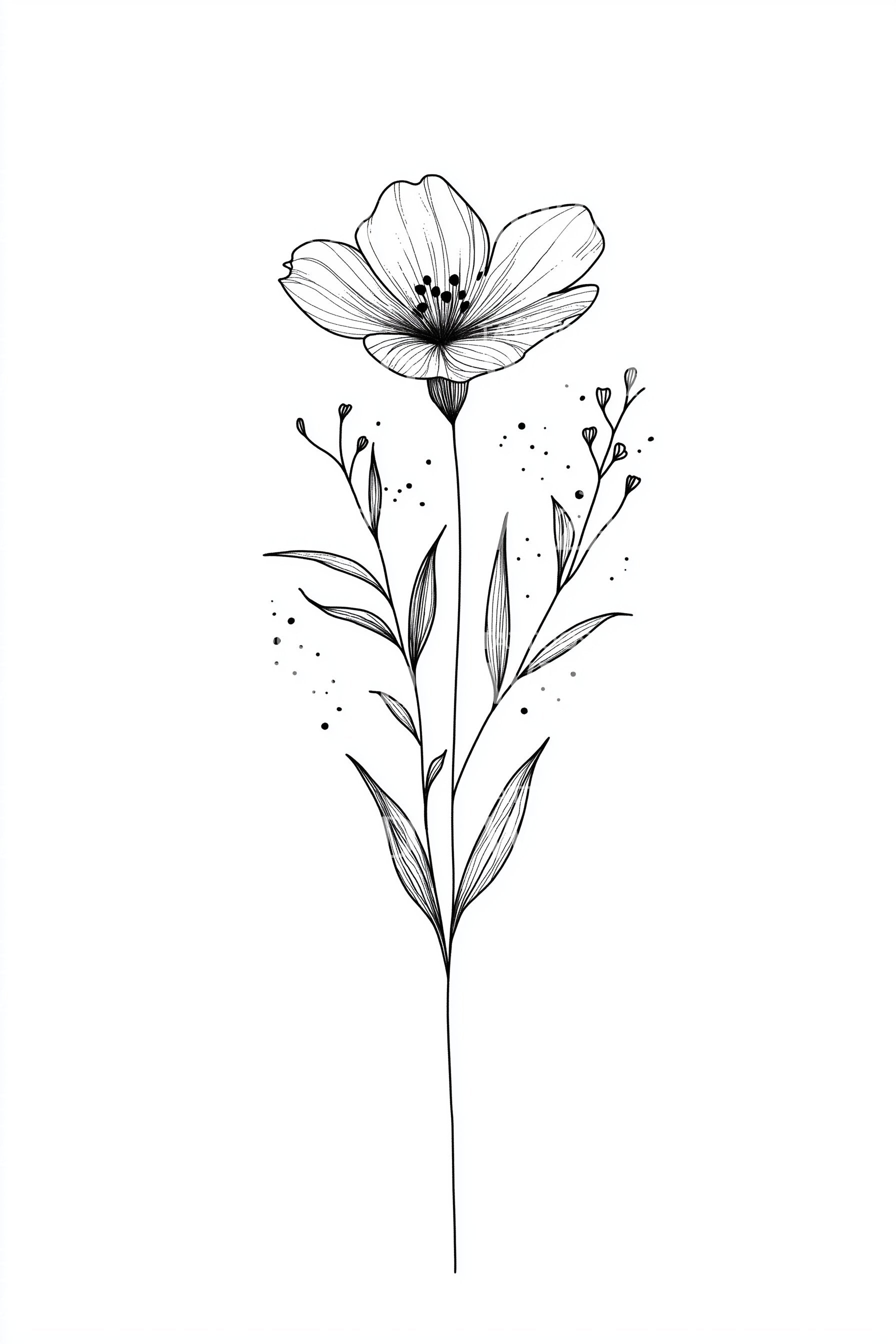沉醉于我们极简花卉纹身设计的细腻魅力。这件作品巧妙结合了精致的轮廓和素描技法,描绘出一朵惊艳的花朵。其简约的特征蕴含着超越传统纹身艺术的低调优雅。非常适合追求精致简约风格的您。
