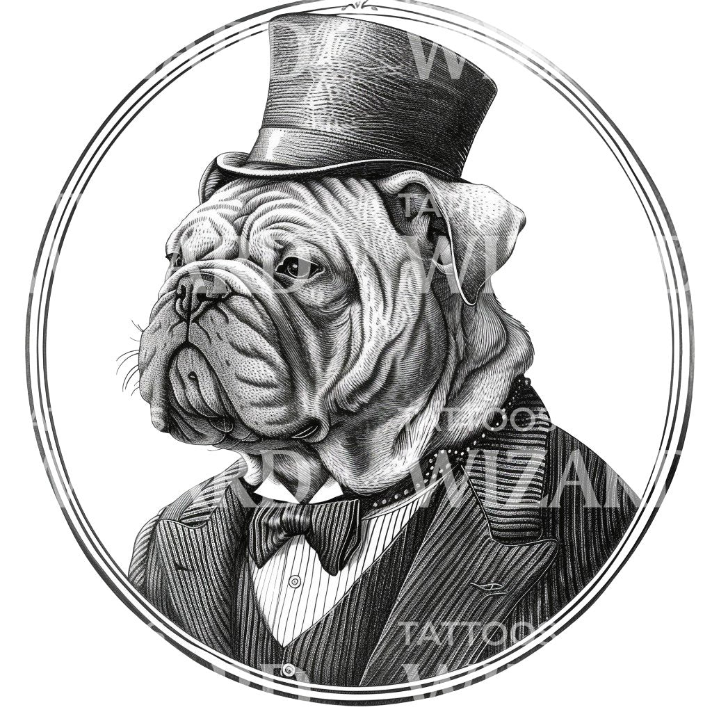 沉浸在我们黑灰色斗牛犬纹身设计的艺术创意世界中。这幅精美的墨水素描在优雅与华丽之间达到了完美的平衡。展示了复杂的细节,设计突出了狗的攻击性轮廓,展现出现代、前卫的风格。今天就提升你的纹身水平吧!
