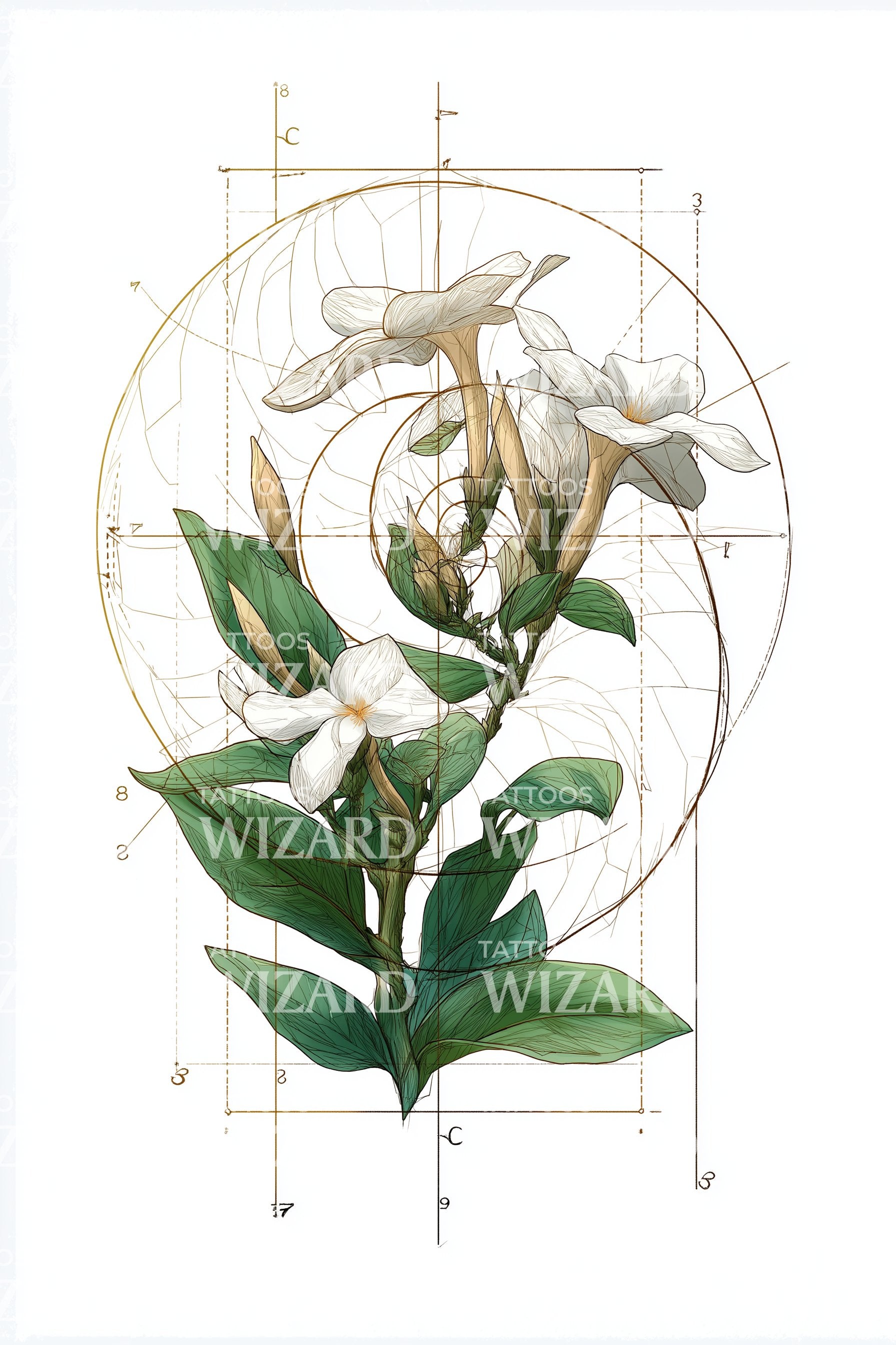 在您的肌肤上释放大自然的美丽,这款逼真的马蹄莲纹身设计。该设计以逼真的风格勾勒出花朵的精致细节,展现出花朵的惊艳优雅。鲜艳的绿色色调为艺术注入生命,编织出迷人的花卉故事。