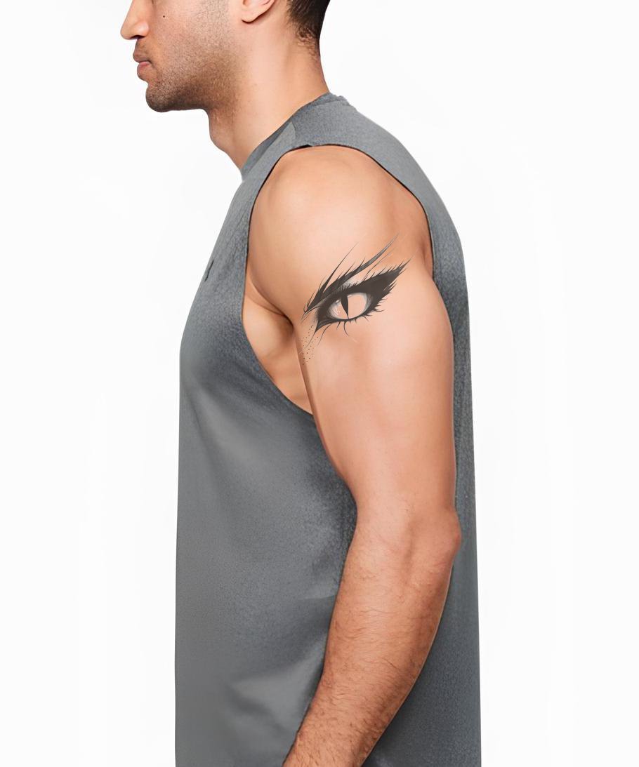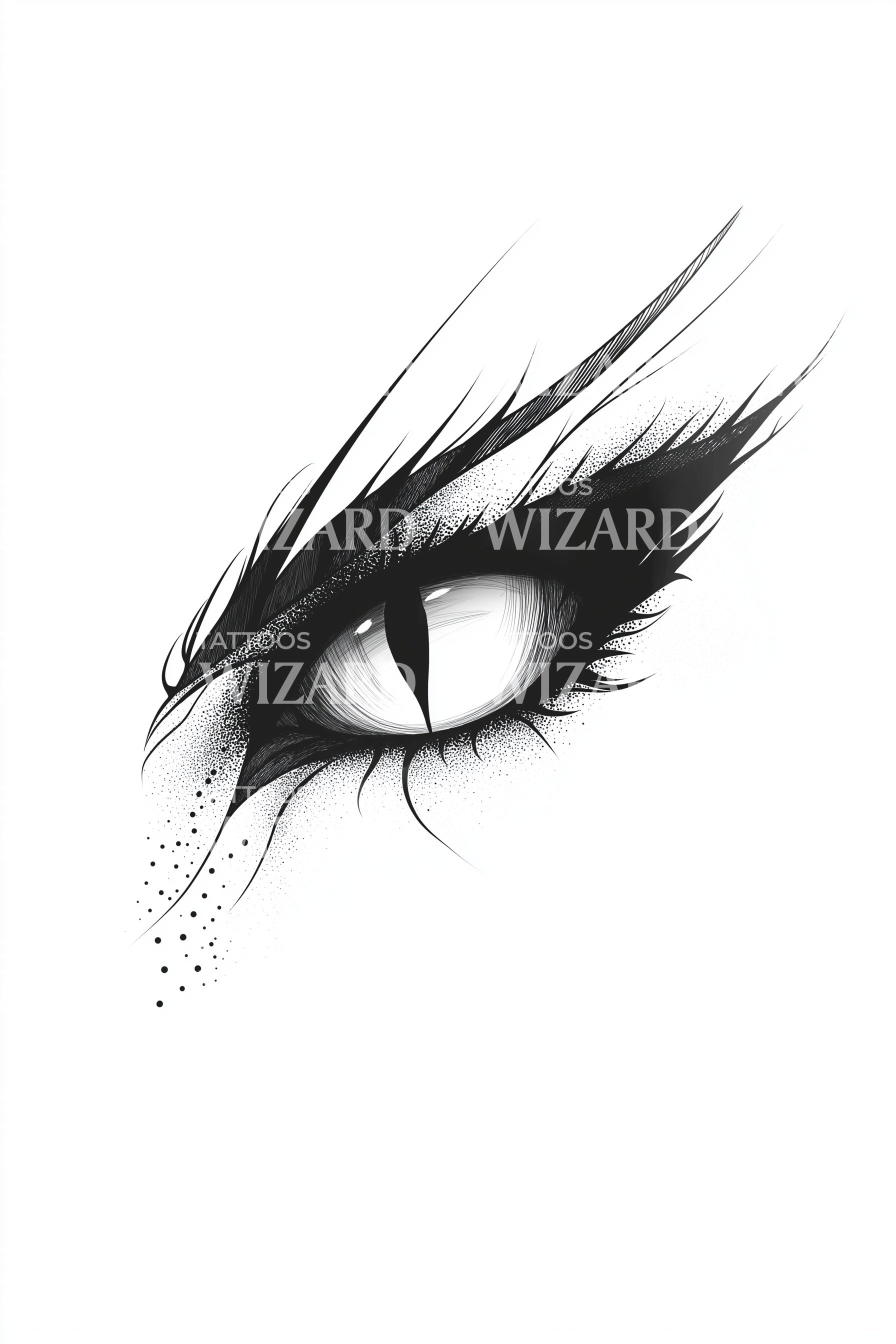 黑灰色的猫科动物凝视,丝滑的眼线,扫动的睫毛和点状烟雾,瞳孔如月光穿透。象征直觉、魅力和自我守护的美,致敬那洞察真相的女性之眼。佩戴者感到自信、富有磁性且受保护。佩戴位置:前臂展现流畅,肋骨展现扫动,小腿展现潜行,肩胛骨展现张扬。